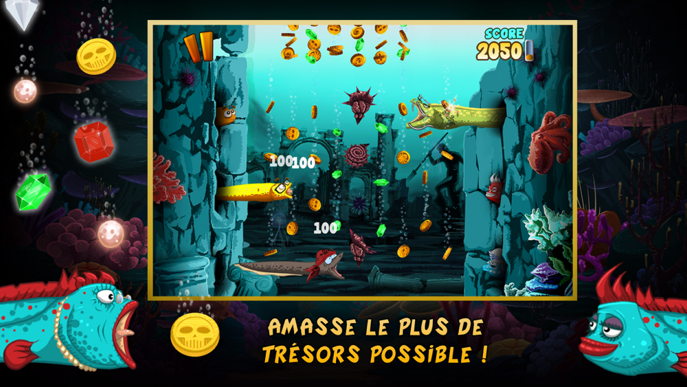 Click on fishes to make them eat the coins and gold falling into the depths. But take care, don’t eat everything you see because it occurs that some sea urchins or anchors fall in the middle of treasures.