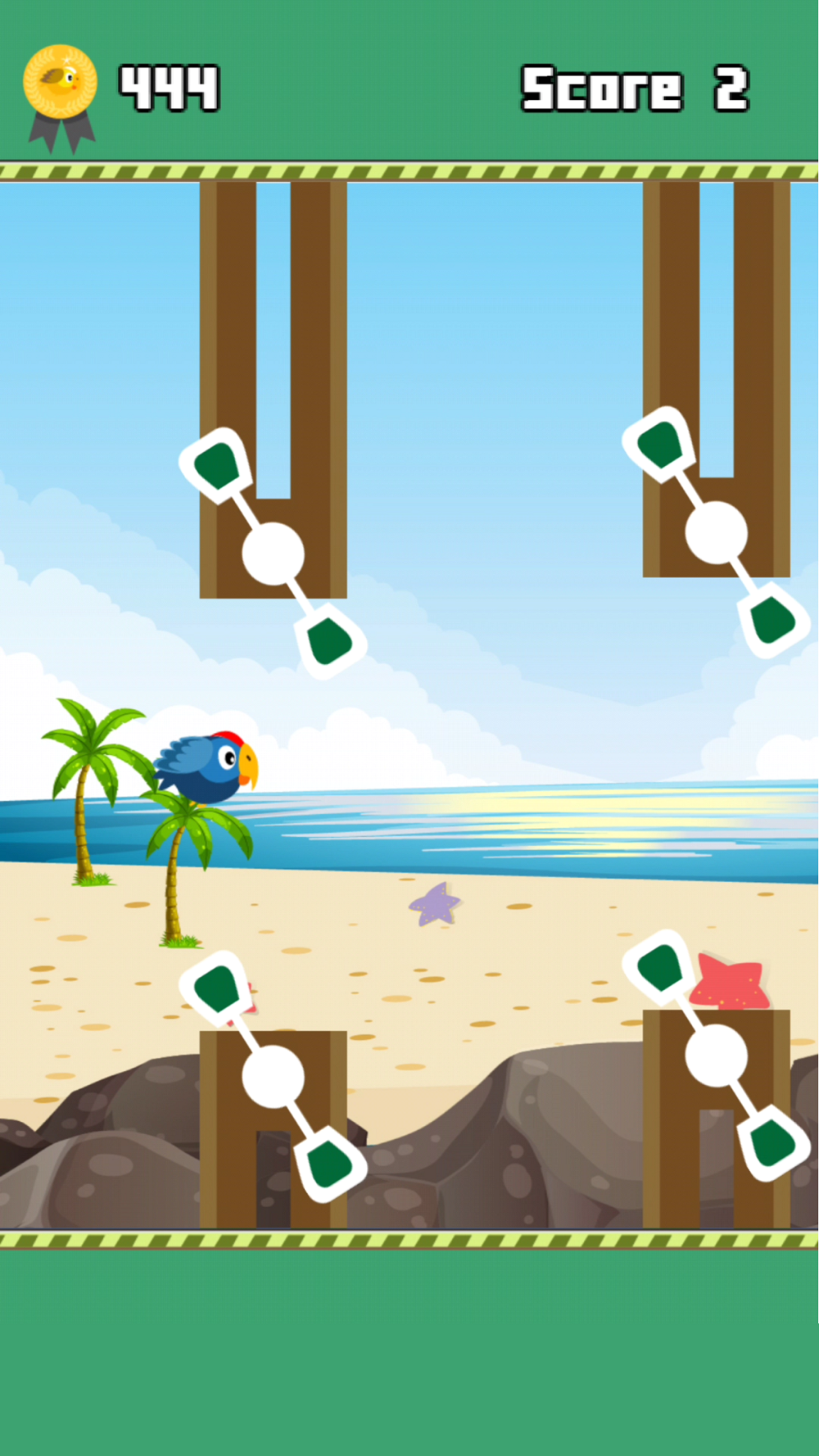 The game is a story of a parrot named Coby. Coby is gentle and shy. One day, hunters come to arrest Stacy and Lady (wife and daughter of Coby). Coby must overcome 100 challenges, trapping hunters to rescue his wife and daughter. The gameplay is similar to Flappy Bird, but more attractive. Please help Coby overcome the challenge.
