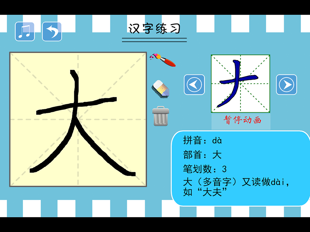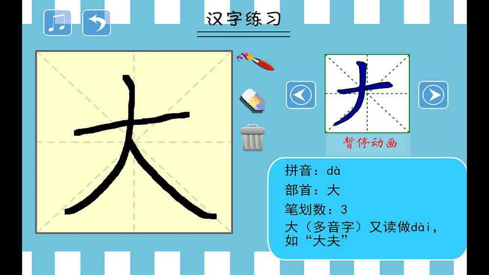 1、笔顺动画,以动画形式演示给孩子看字的书写过程。