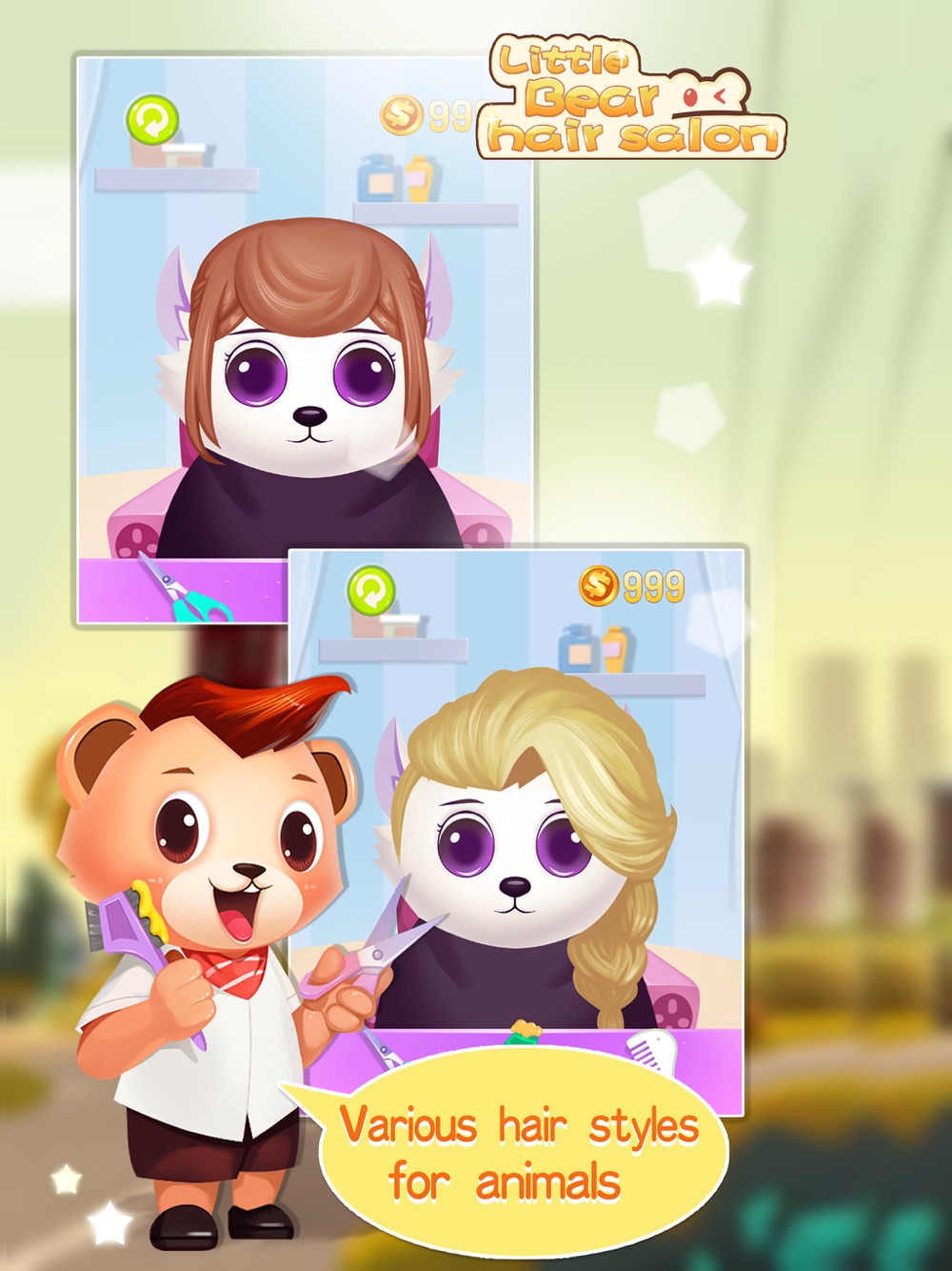 使用梳子,洗髮水,噴頭,吹風機,剪刀,染髮梳等各種新奇的工具為可愛的小動物們洗頭髮,剪頭髮,燙頭髮,染色,打造各種時尚靚麗的髮型。還能使用各種美麗的太陽鏡,發卡等飾品裝飾你喜愛的小動物。