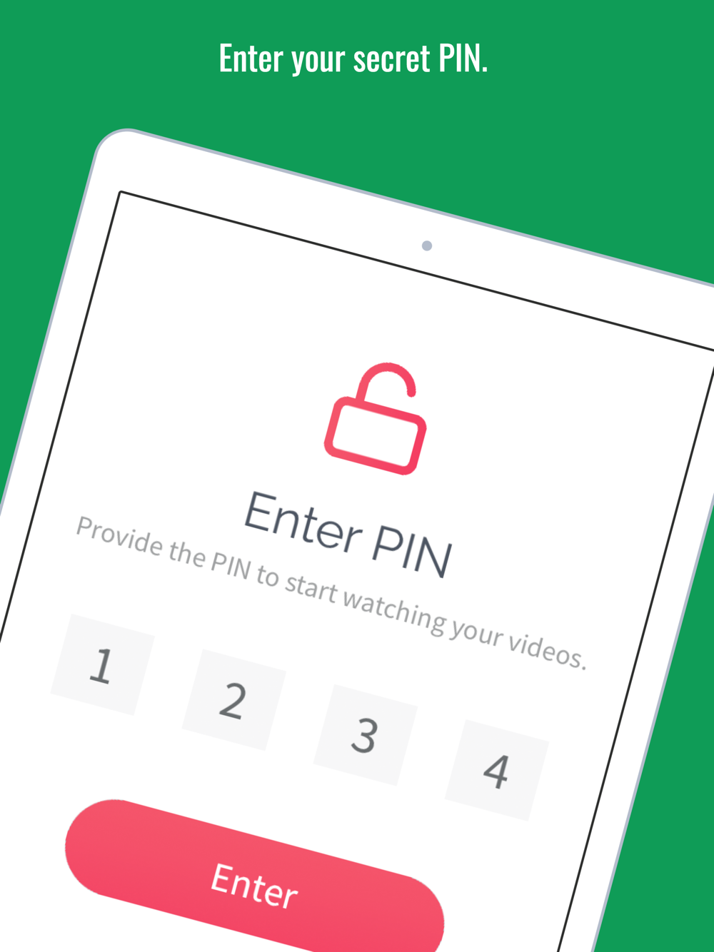 Searching for a new topic is protected by a PIN. We will ask you to setup it during first run of the app. Every time you want to start watching, you will be asked for a PIN.