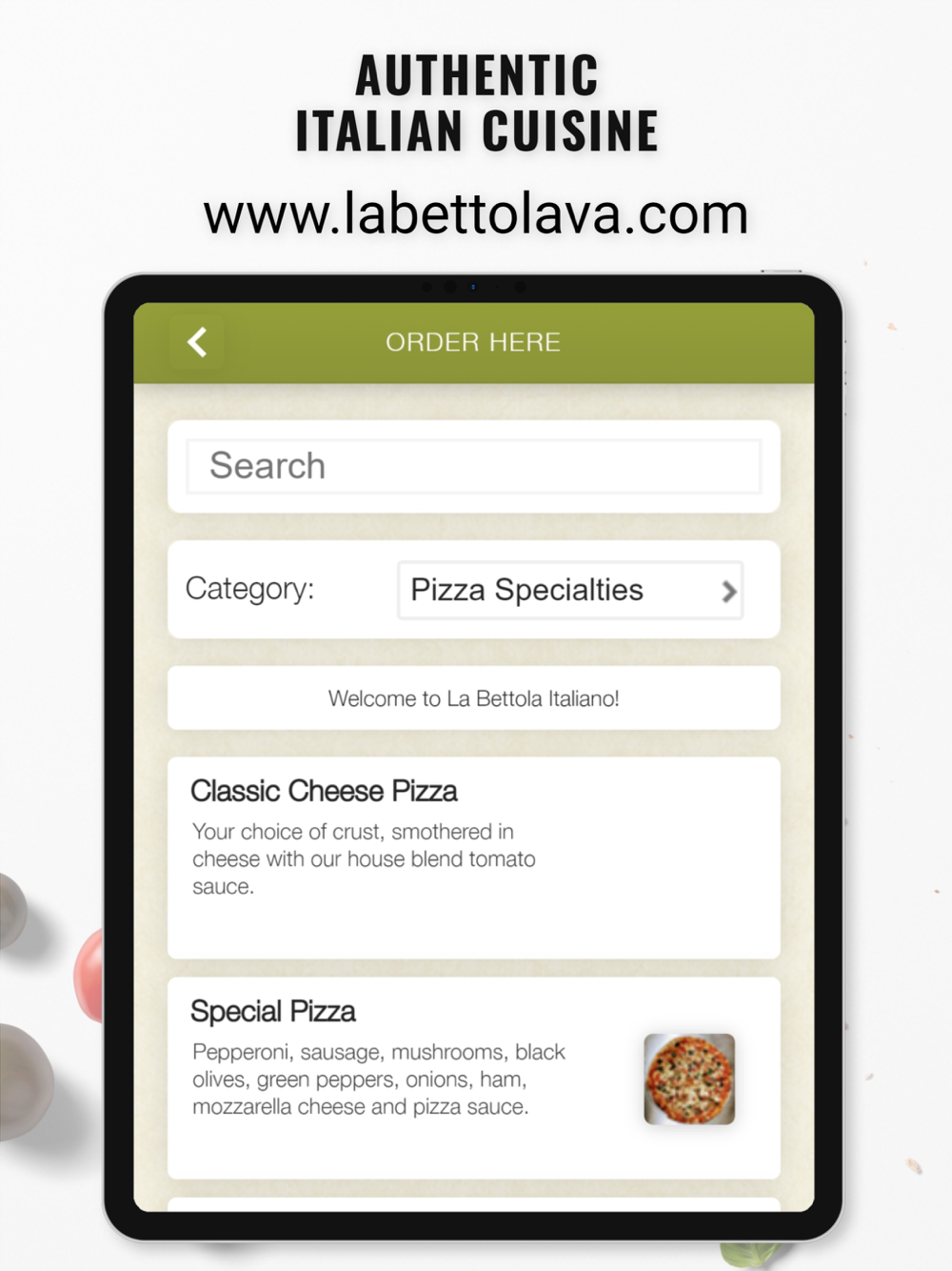 You can now order the delicious homemade Italian food you've known and loved easily and securely. Visit us online at www.labettolava.com