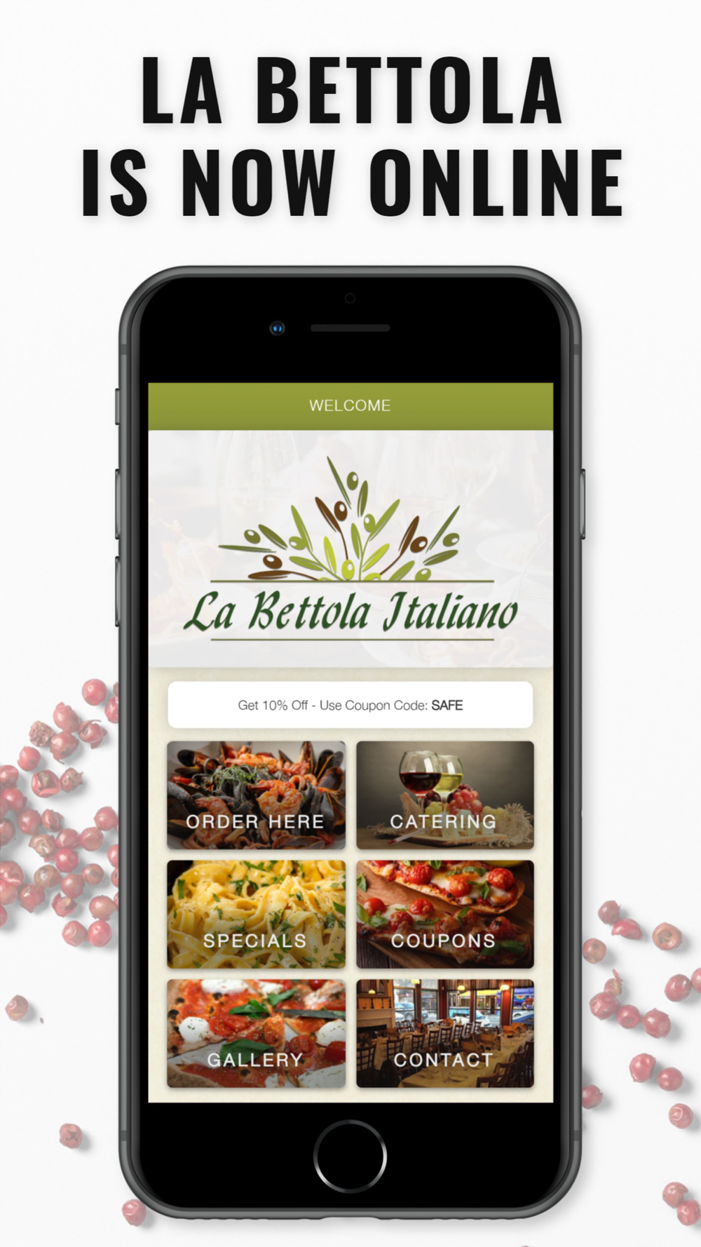 La Bettola Italiano is now mobile! Download today and order online from our website or from your phone! Receive 10% off your first order using coupon code: HUNGRY