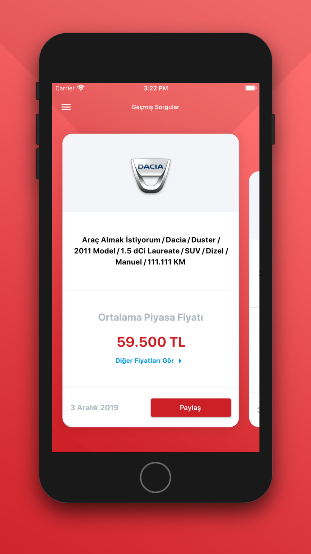 Araba Değeri uygulaması, 2. el araçların ortalama piyasa fiyatını, hızlı satar ve tok satıcı fiyatlarını gösteren bir hesaplayıcıdır. Arabam kaç para veya bir araba kaç para eder sorularının cevabıdır.