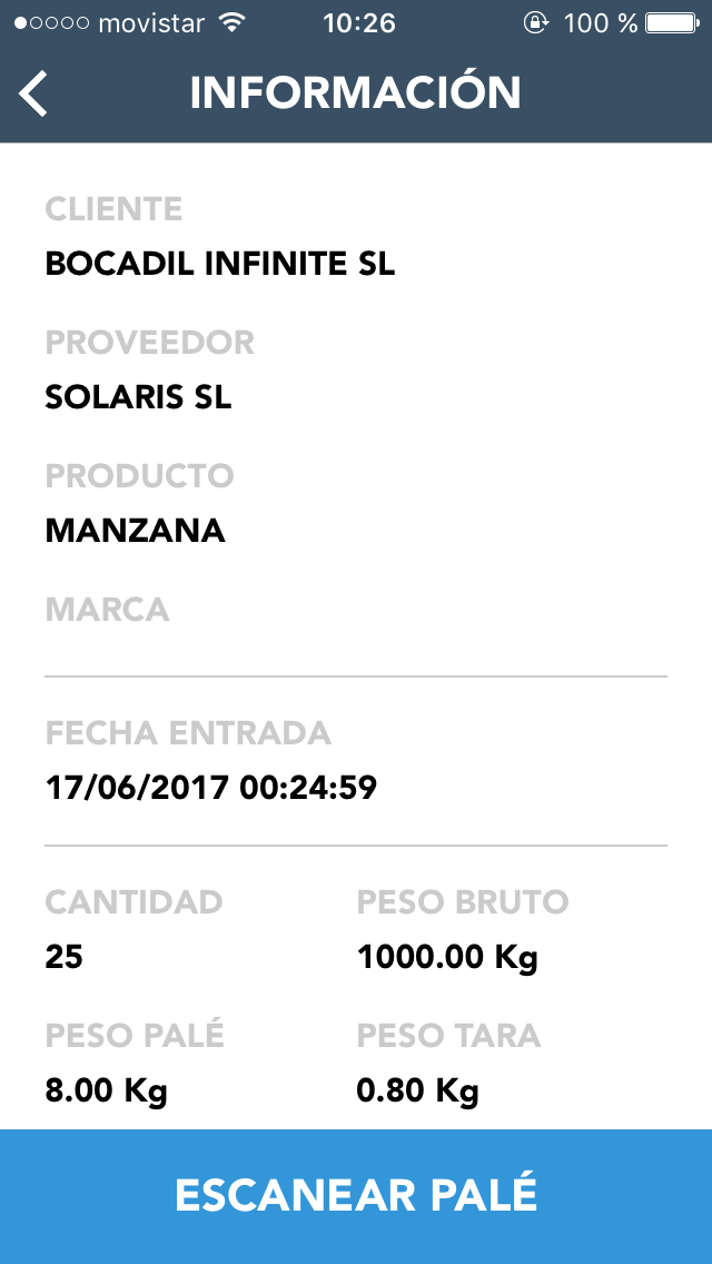 - Escanear un palé de tu almacén y visualizar en detalle toda su información.
