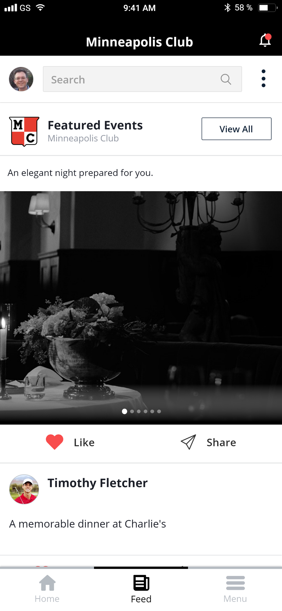 Minneapolis Club Mobile App can monitor statements, explore the directory, stay updated on club events, make reservations, and more.
