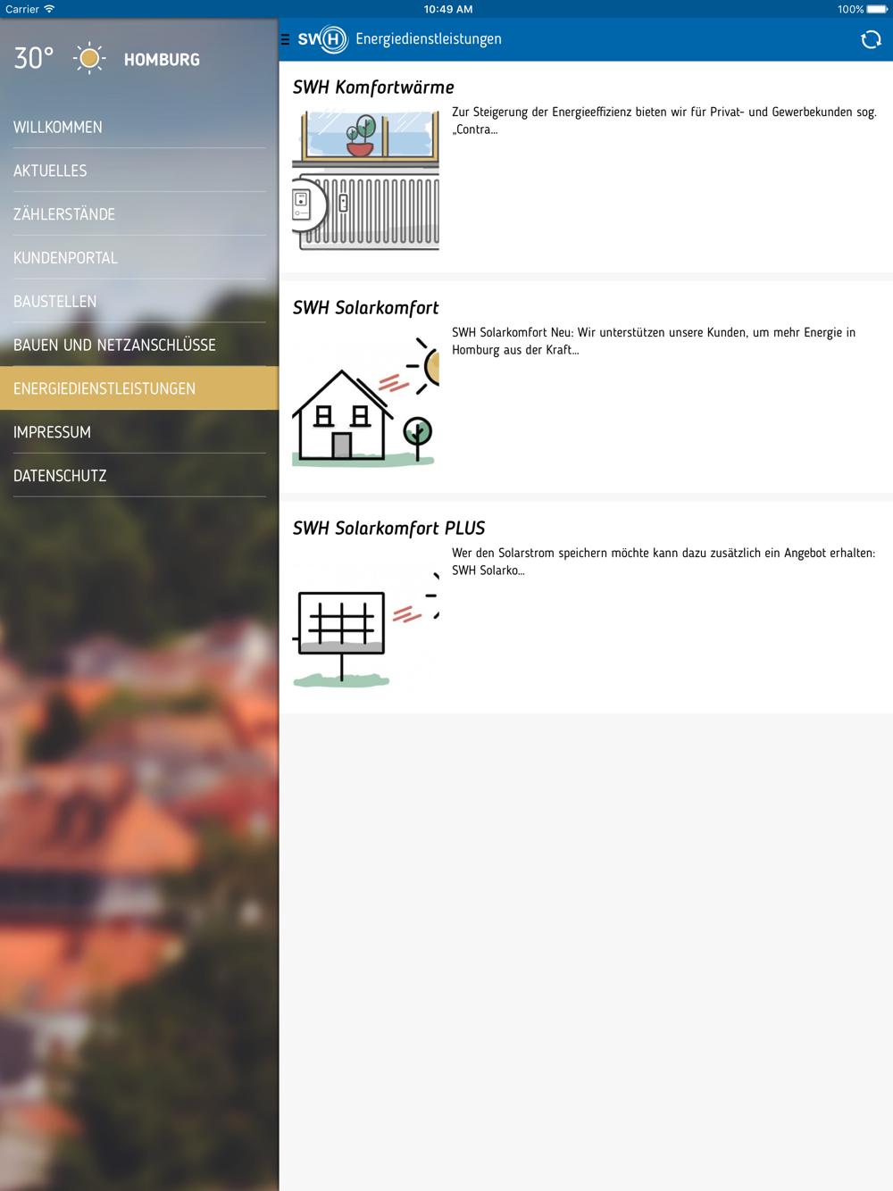 Die „Meine Stadtwerke Homburg“-App bietet Ihnen ein Kundenportal für unterwegs: Sie wollen zu den Stadtwerken wechseln oder suchen einen Versorger für Ihre neue Wohnung? Mit dieser App haben Sie die Möglichkeit, sich bequem von unterwegs an- und abzumelden sowie über alle SWH-Dienstleistungen zu informieren.