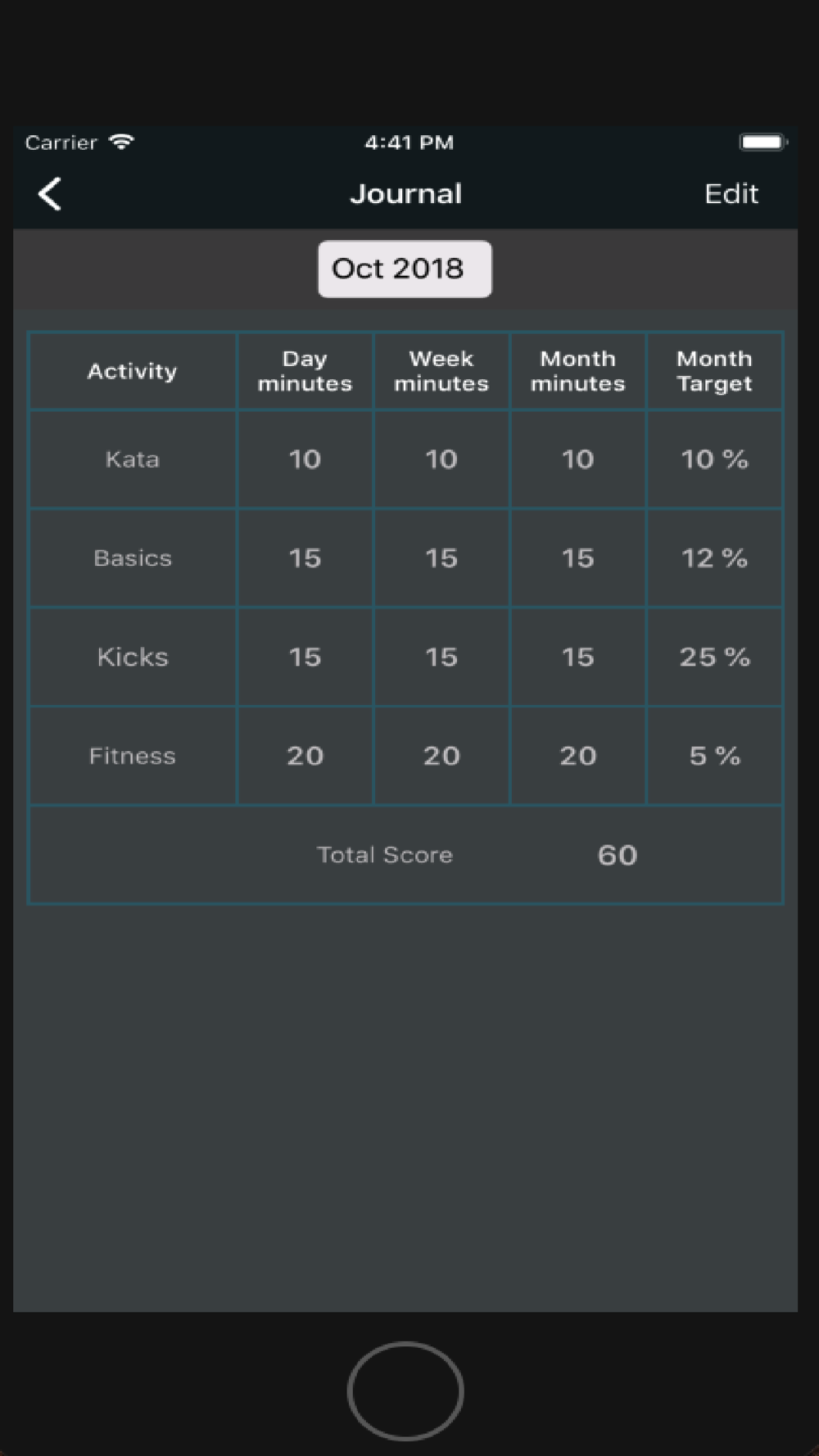 -Journal where you can review your practice time against Daily, Weekly, and Monthly goals.