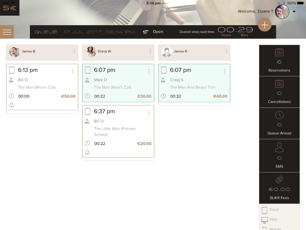 NOTE: This app is the shop owner Kiosk. Search SLIKR for the client booking app.