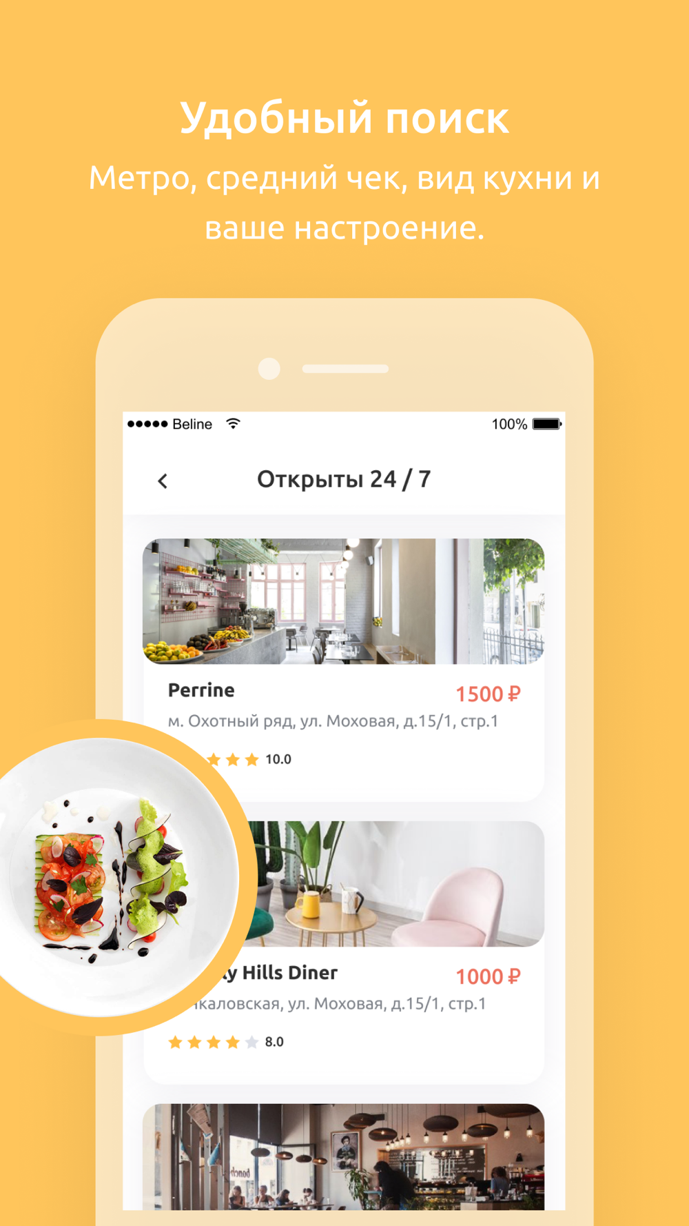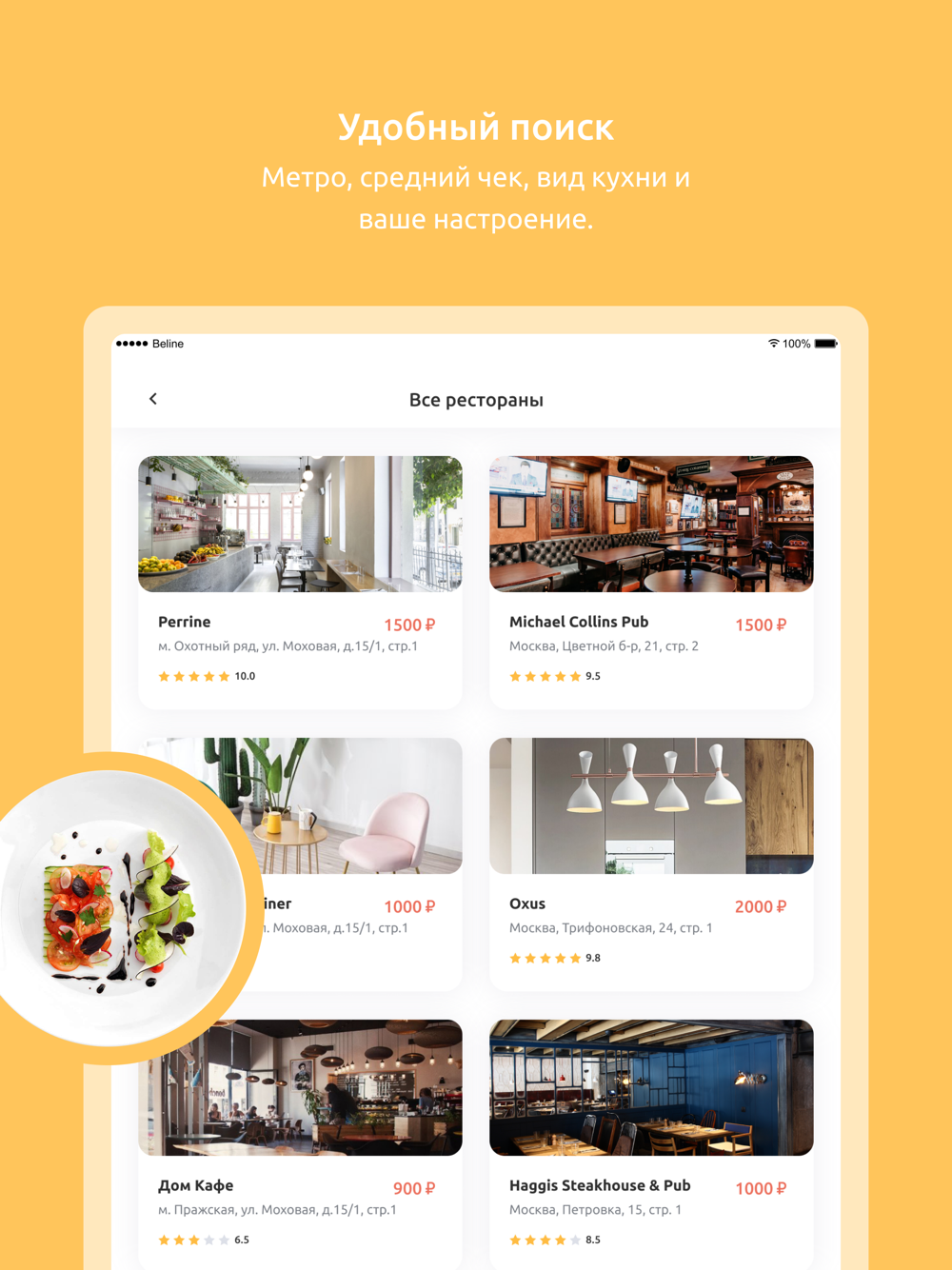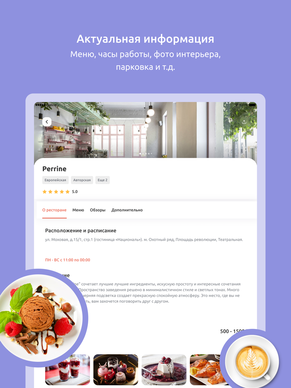 Вы не найдёте в этом приложении ВСЕ рестораны Москвы, здесь собраны только проверенные, необычные и обязательные к посещению места.