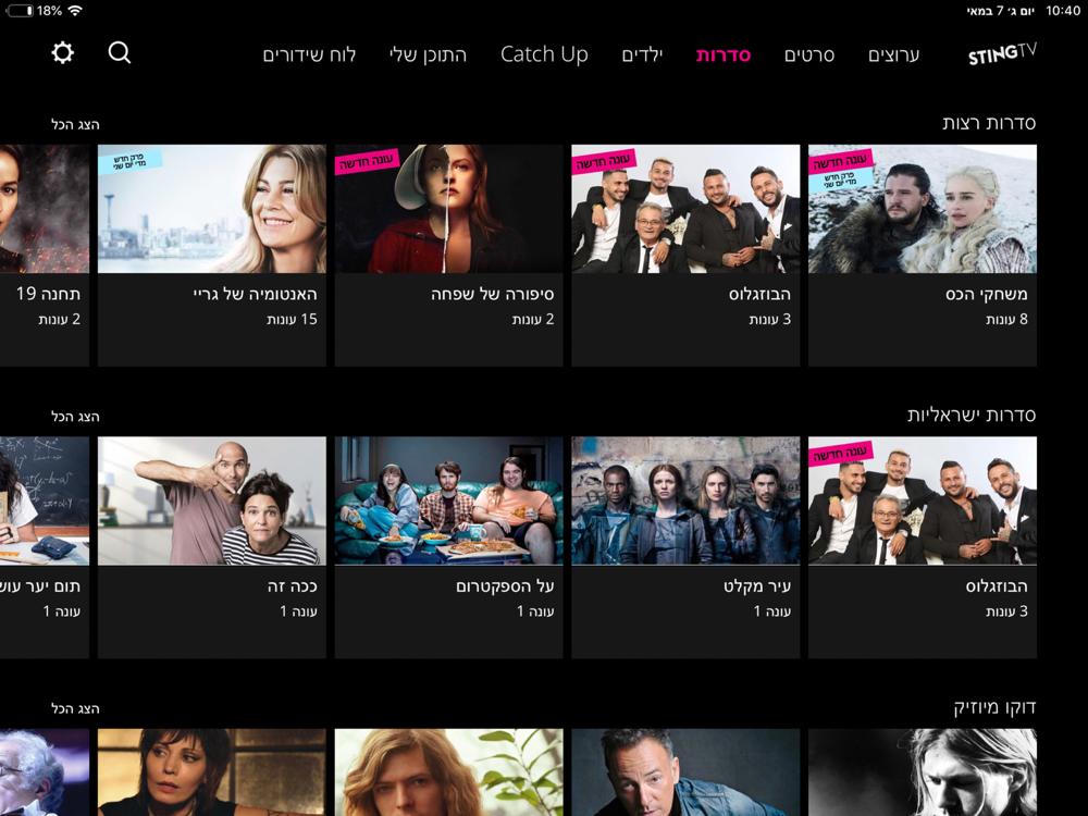 בכל פעם שתכנסו ל STINGTV תופתעו מחדש כי השירות כל הזמן מתחדש ומתווספים תכנים חדשים, המלצות אישיות ושירותים מתקדמים.