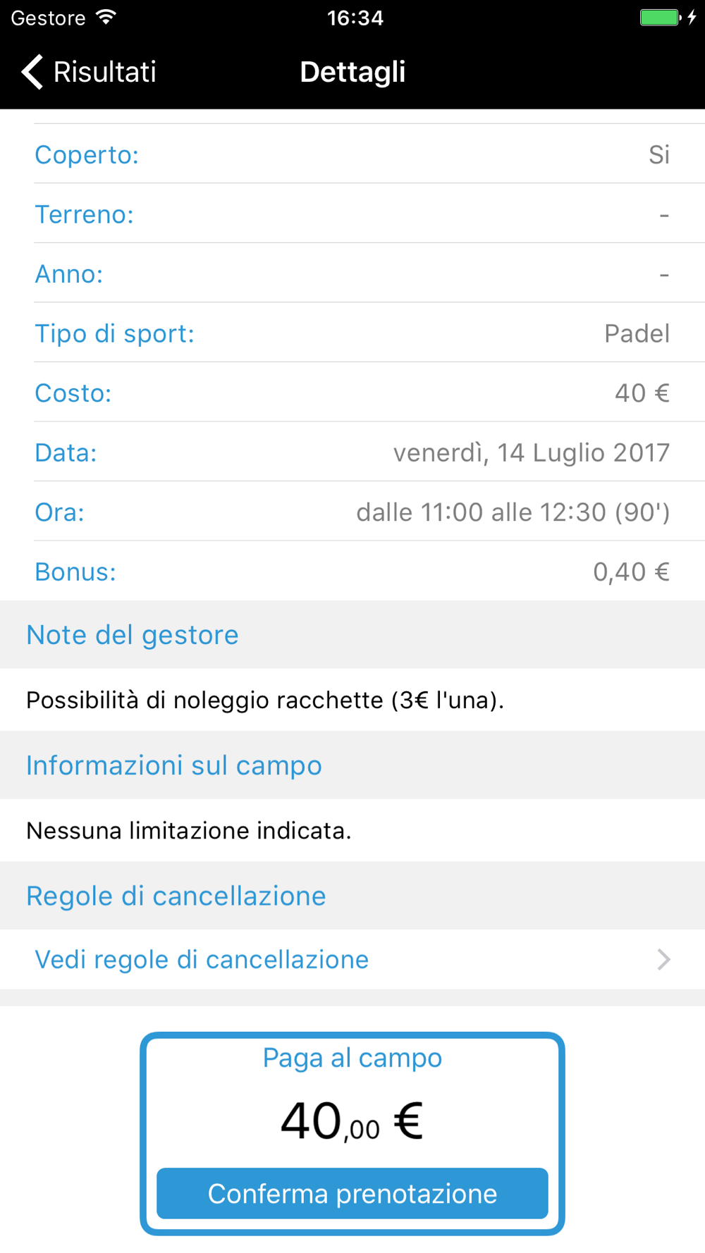 1) Cerca e trova un campo disponibile in tempo reale tra tutte le nostre strutture
