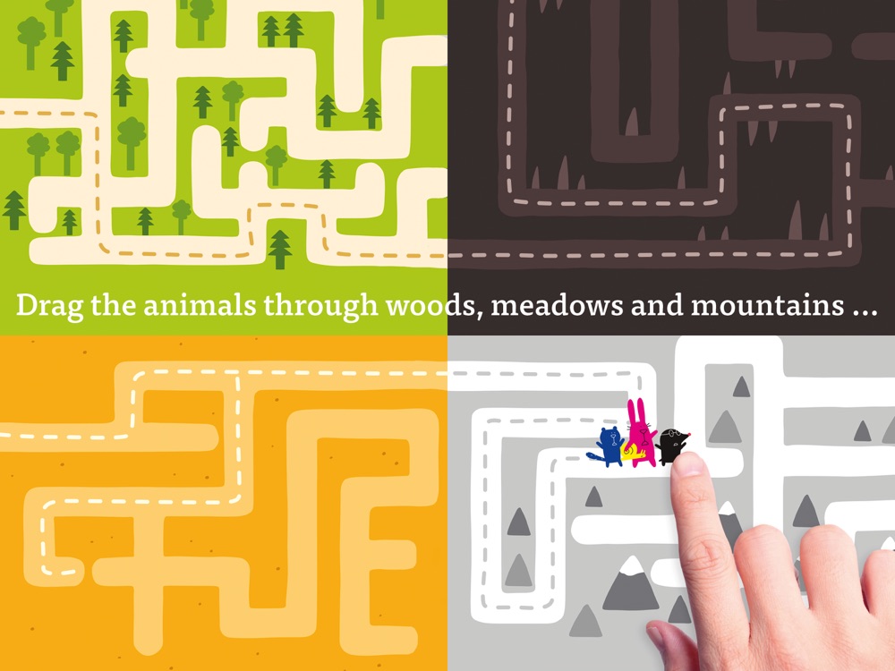 Help Hare, Snail, Dormouse and Mole run away from the wolf, by dragging them through the mazes in search of a safe place to finish their picnic in peace.