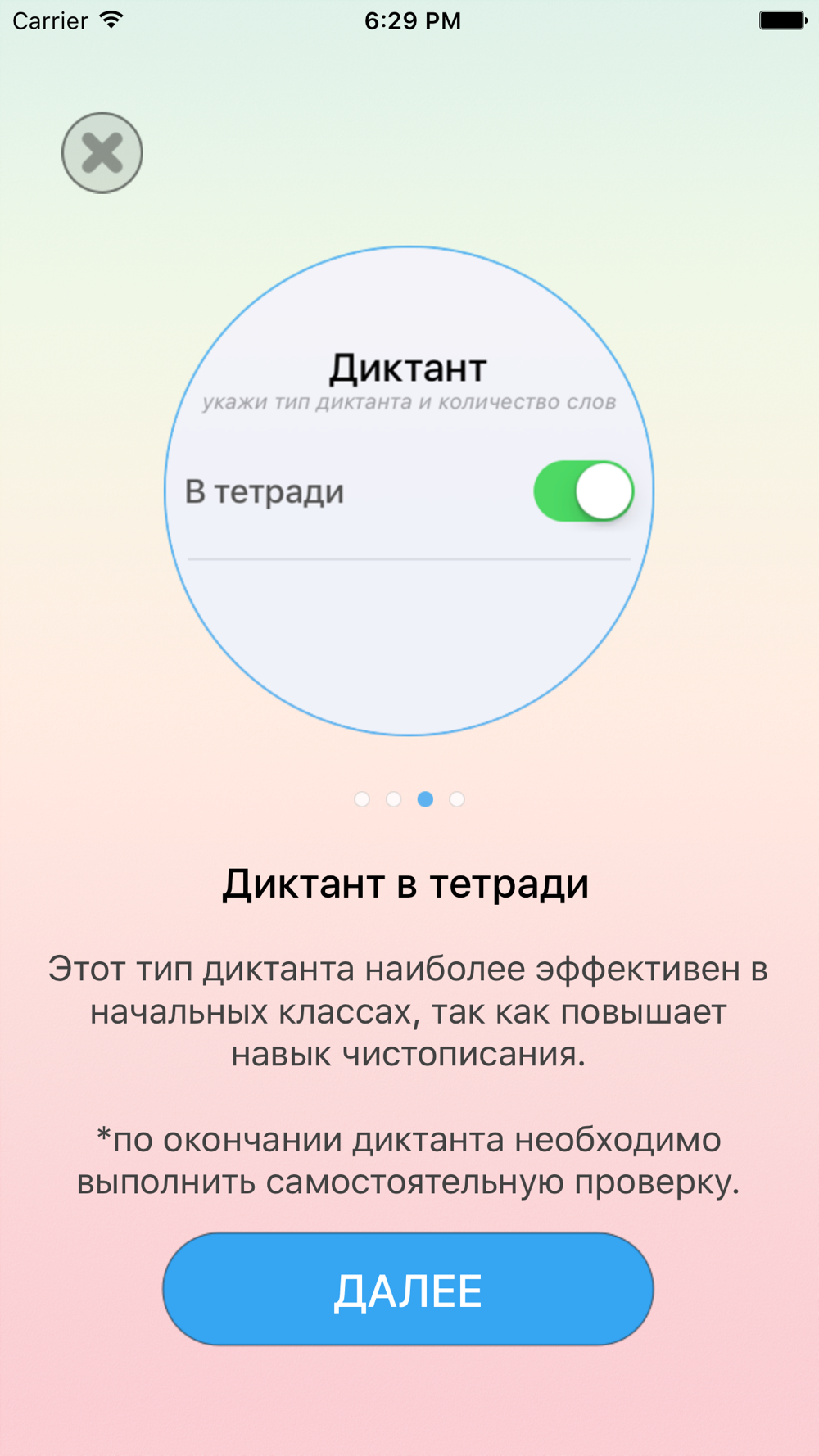 - Словарный диктант под диктовку как на устройстве, так и в тетради.
