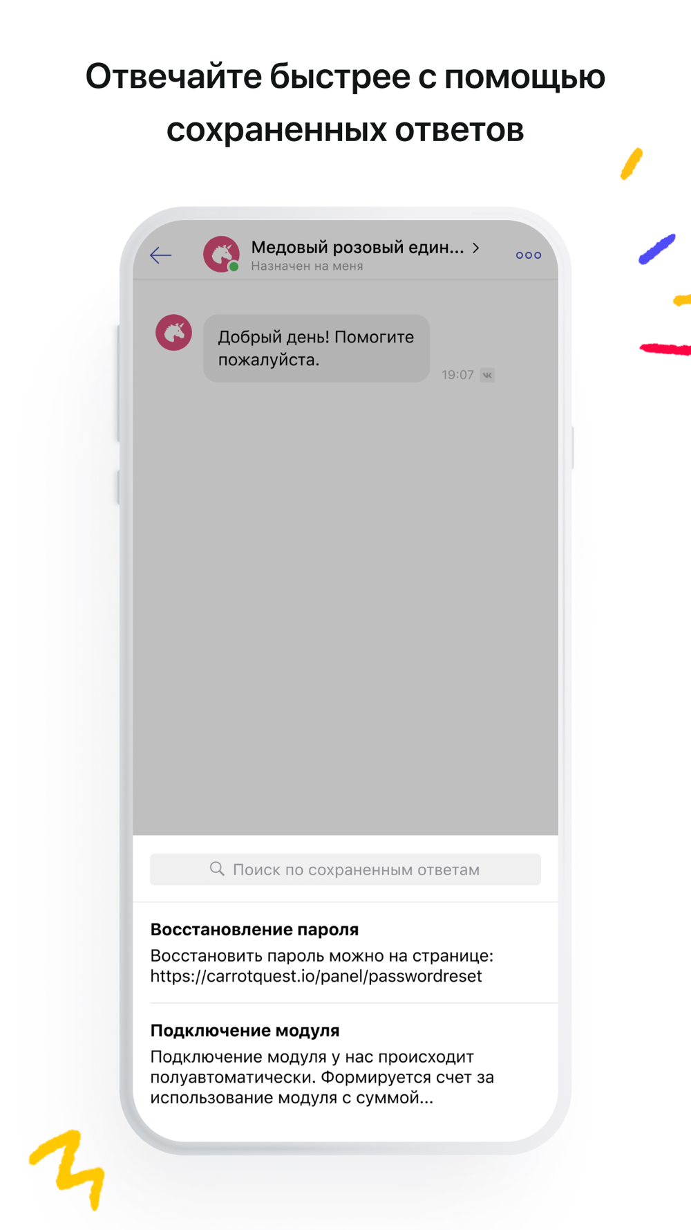 Отправляйте сохраненные ответы на самые часто задаваемые вопросы.