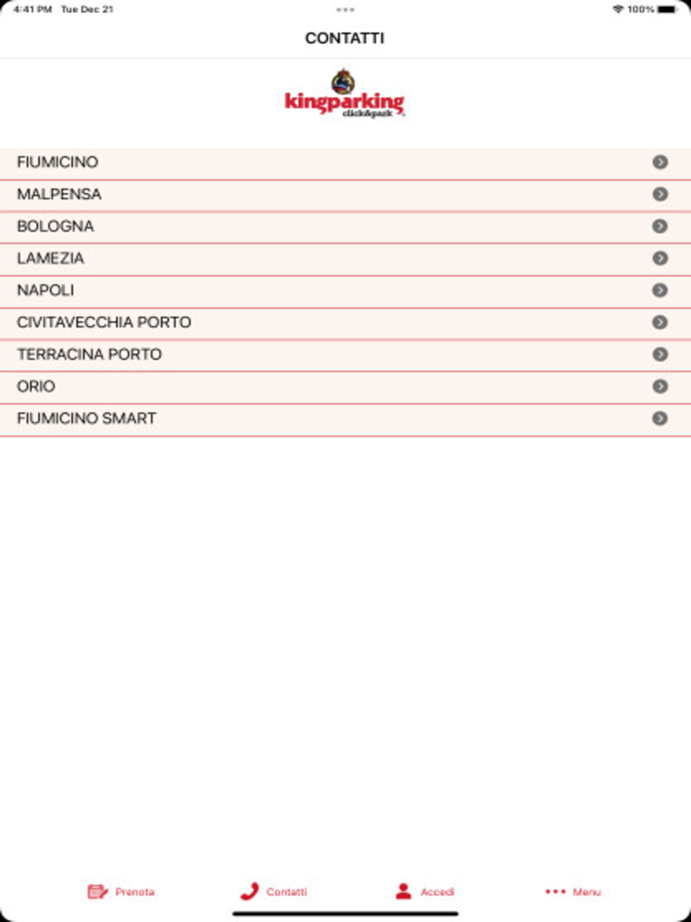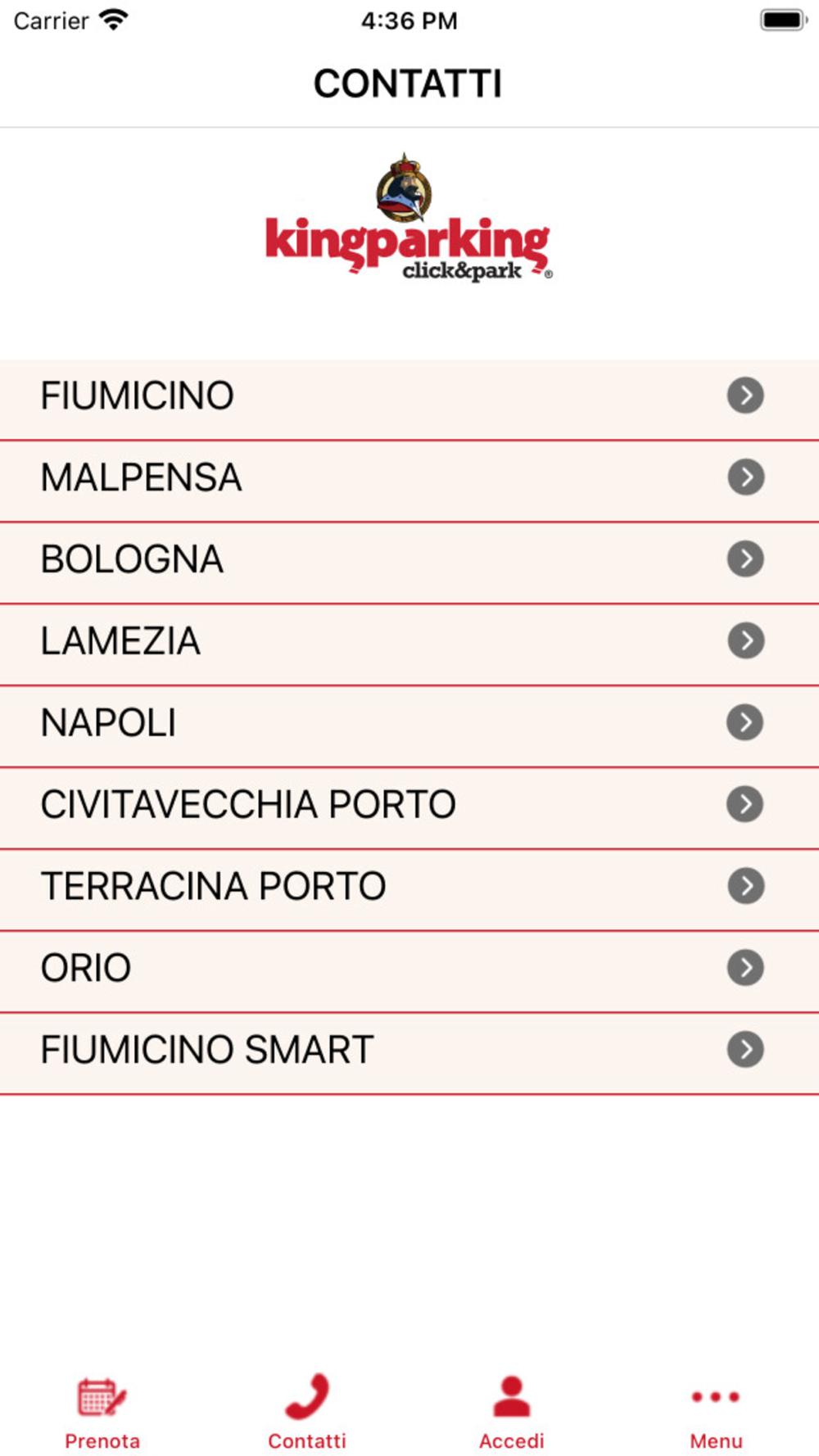 Dal successo dei parcheggi aeroportuali di Fiumicino e Milano-Malpensa Kingparking ha esteso il proprio network con collaborazioni a Bergamo, Bologna, Firenze, Milano-Linate, Napoli, Pisa, Torino, Venezia e Verona portando così il proprio brand a livello nazionale.