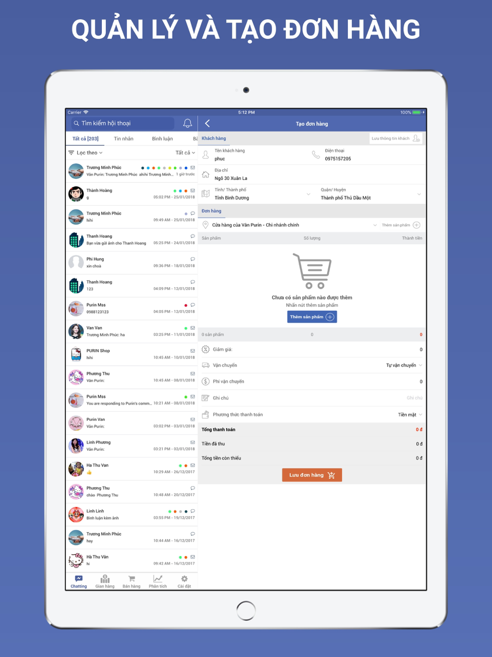 - Quản lý đơn hàng, thu chi, công nợ
