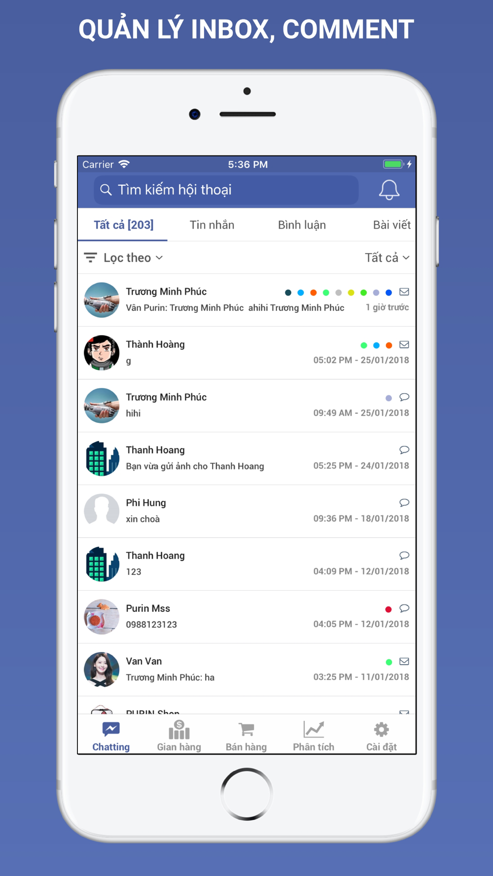 - Các tính năng lọc theo số điện thoại, tìm kiếm và khóa user hữu ích