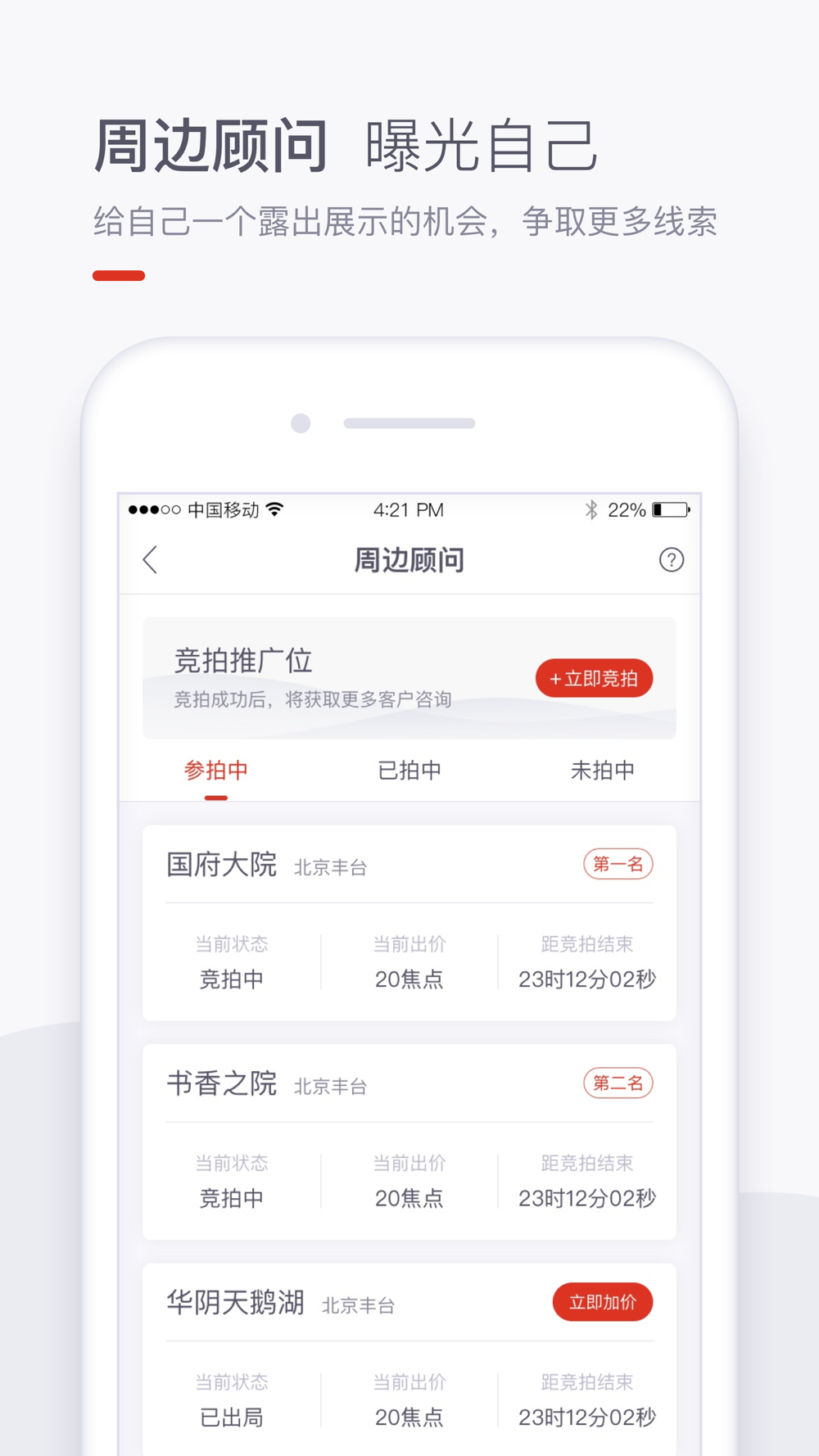 焦点卖房是搜狐焦点推出一款供经纪人使用的开放平台、电商扩展平台、便捷助手服务平台。实现经纪人多渠道多方式主动挖掘和被动接收客户。经纪人可在线管理客户、监控客户、与客户时时在线沟通。无论您是房产经纪人、开发商置业顾问、经纪公司经纪人、渠道经纪人、购房者、业主等等等等,只要您想成为纪纪人卖房,都可以来焦点卖房平台;
