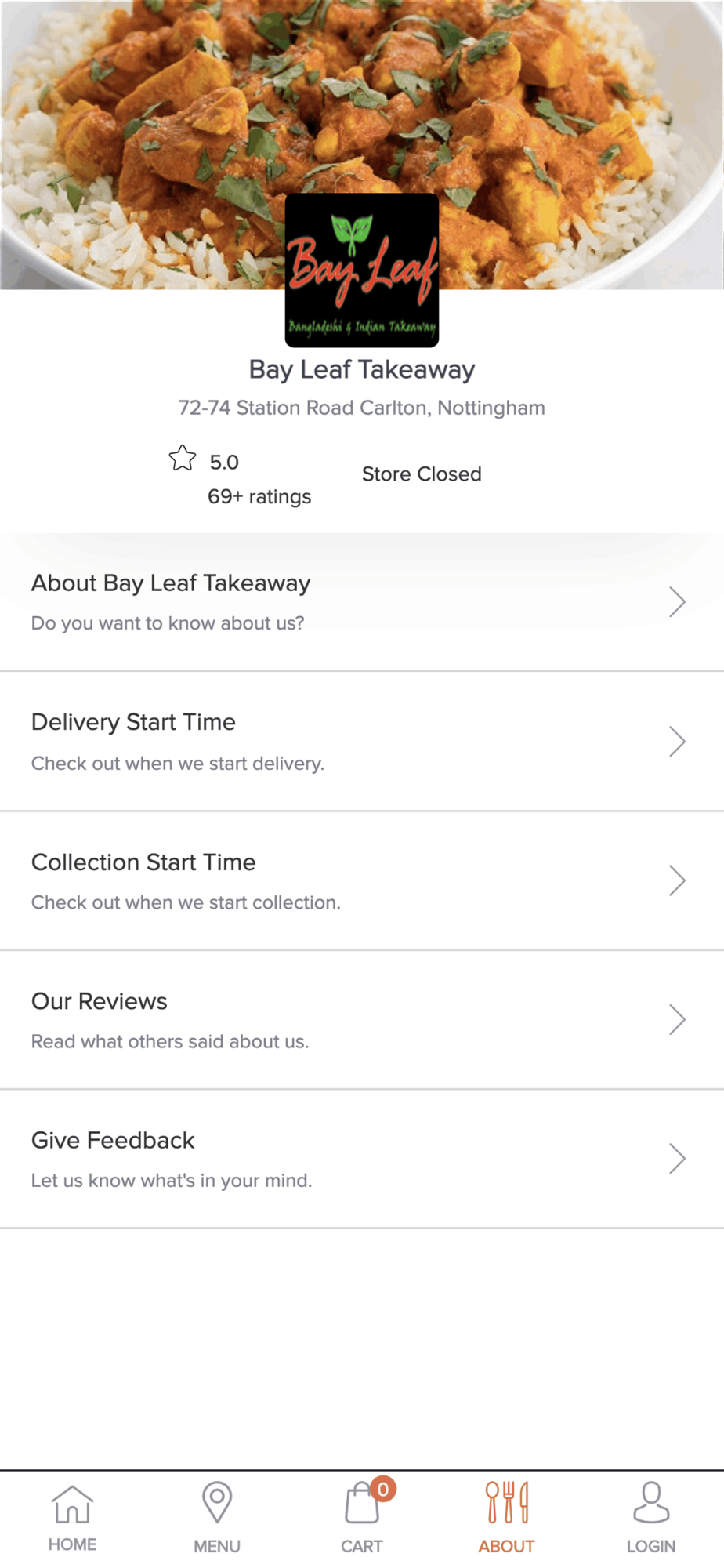 We're also available for ordering on https://bayleafnottingham.co.uk/storemenu and also on https://kuick.com/order/bay-leaf-takeaway