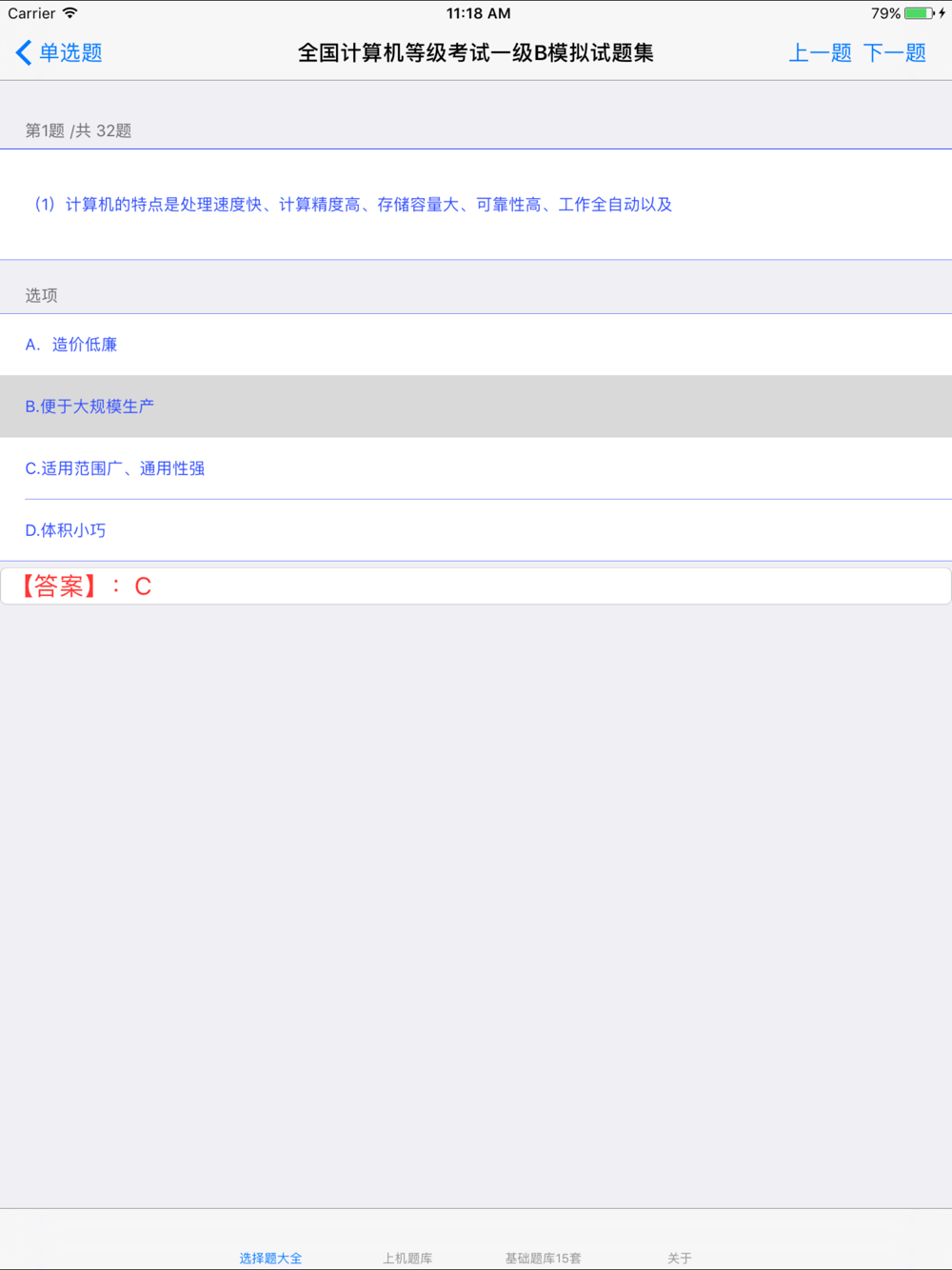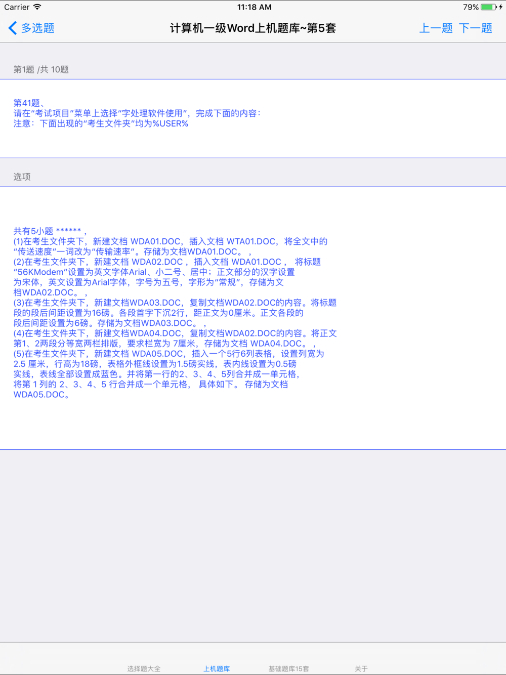 计算机一级题库包含选择题、基本操作题、字处理、演示文稿、上网题所有考试题型,含历年真题及模拟试题各十套,欢迎大家免费使用!