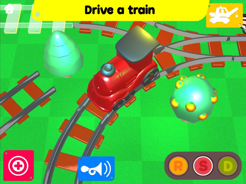 Complete the railway, and run the train to ride in it! Explore 8 different construction schemes of roads to complete and install houses, signs, flowers, flower beds, etc.