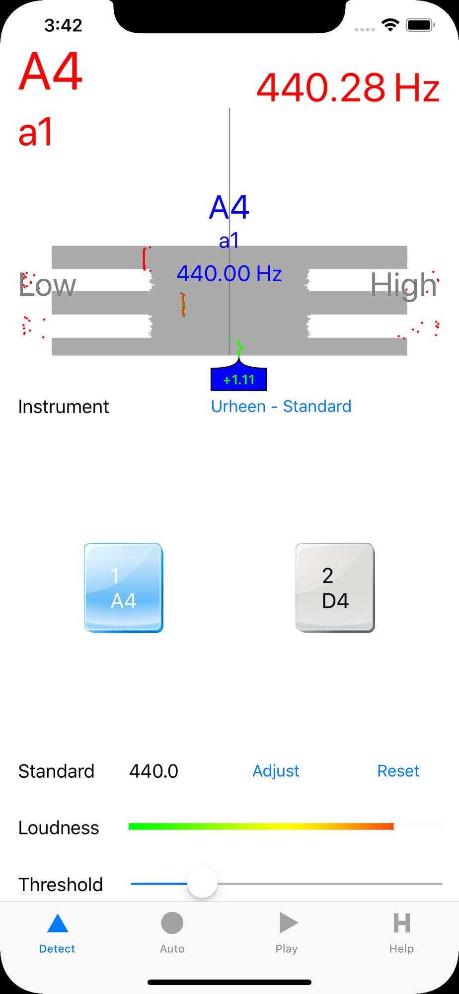 When you pluck at the string of your musical instrument, it can automatically measure the pitch of the string, and through a variety of methods to indicate the accuracy of the pitch; addition, it can issue the standard sound of the strings, for you to tune through listening.