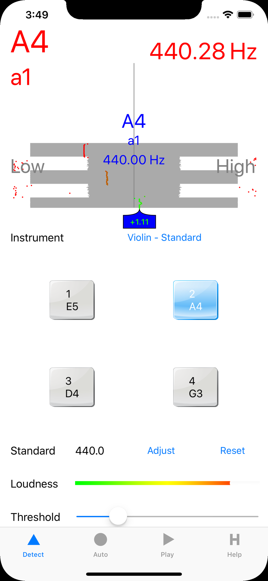 When you pluck at the string of your musical instrument, it can automatically measure the pitch of the string, and through a variety of methods to indicate the accuracy of the pitch; addition, it can issue the standard sound of the strings, for you to tune through listening.