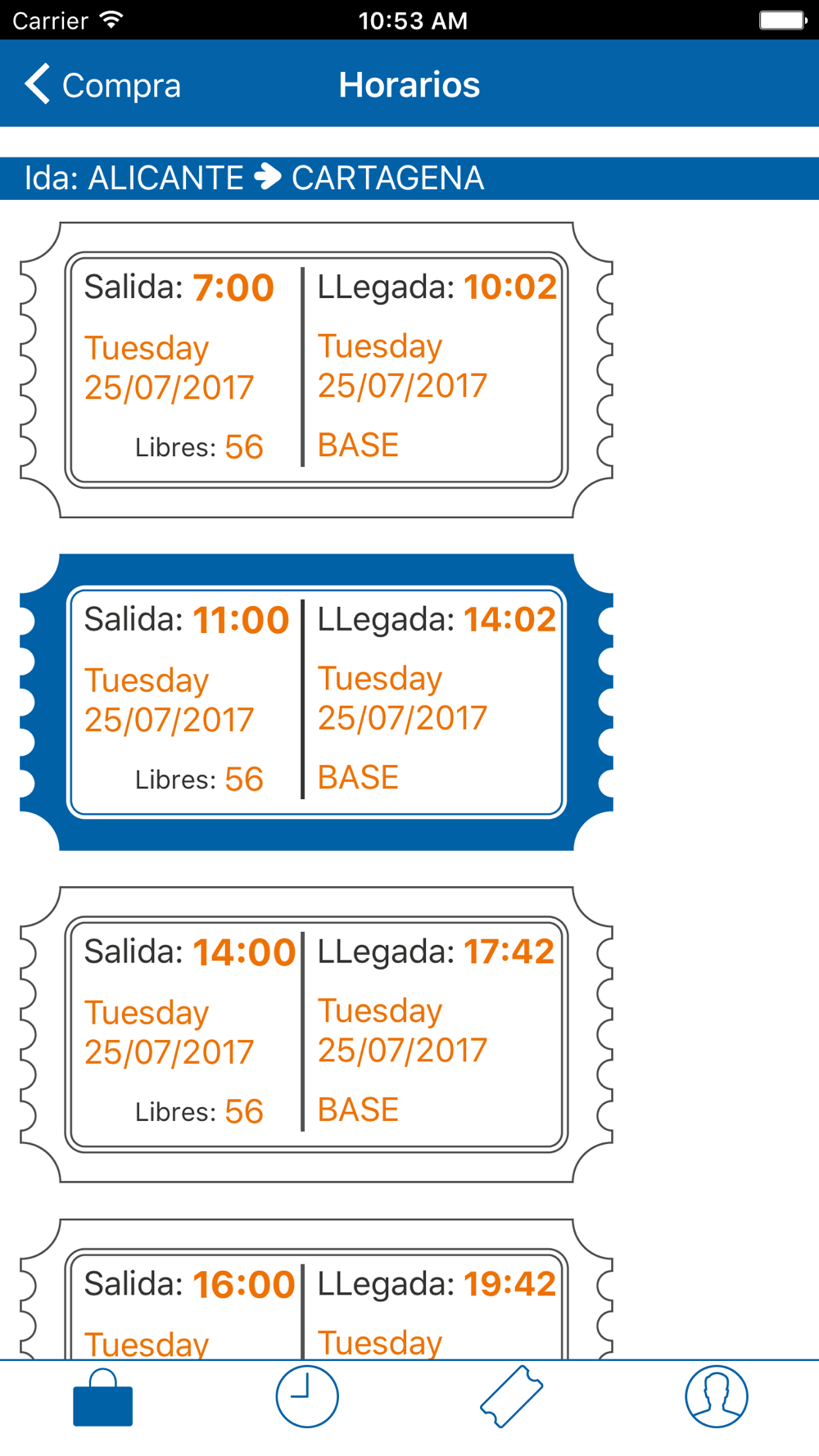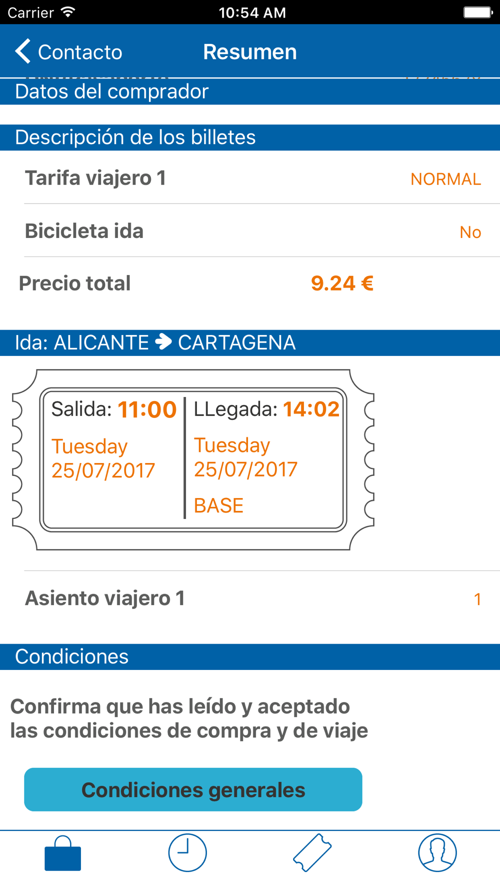 Permite la creación de usuarios para agilizar el proceso de compra, guardando automáticamente los datos personales. Desde esta aplicación podrás consultar y gestionar todos tus billetes comprados, permitiendo modificar o anular como en la página web.