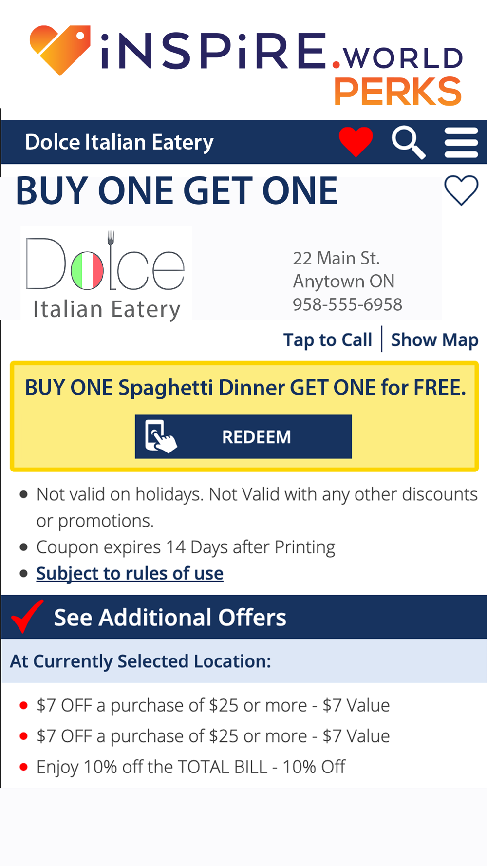Inspire.World Perks Mobile Coupon Savings App brings you the best of over 500,000 local and national savings locations.