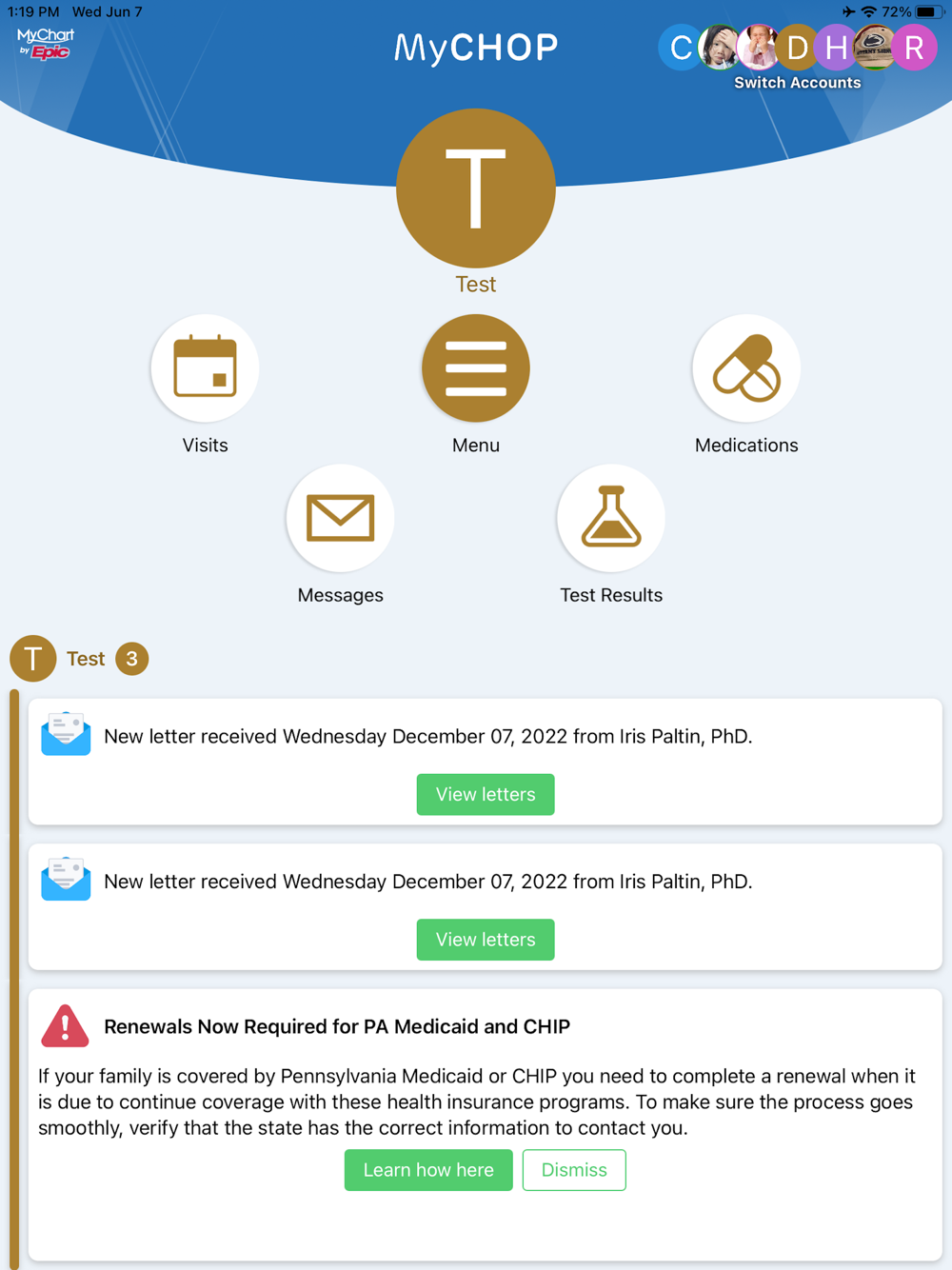 MyCHOP is the online patient health portal for patients and families of Children's Hospital of Philadelphia (CHOP). Schedule appointments with your child’s pediatrician, or schedule in-person or video visits with a growing list of pediatric specialists. Use your phone’s camera to attend video visits with your child’s provider. Send messages to your child’s provider and request prescription refills and referrals. You can also access a current list of your child’s medications, immunizations, allergies, physician-released test results, growth charts, as well as a health summary and your account billing summary. Complete history Questionnaires. Track My Health features allow patients enter data manually onto the MyCHOP app through Apple HealthKit. Data is not received through Apple Health and wearable devices.