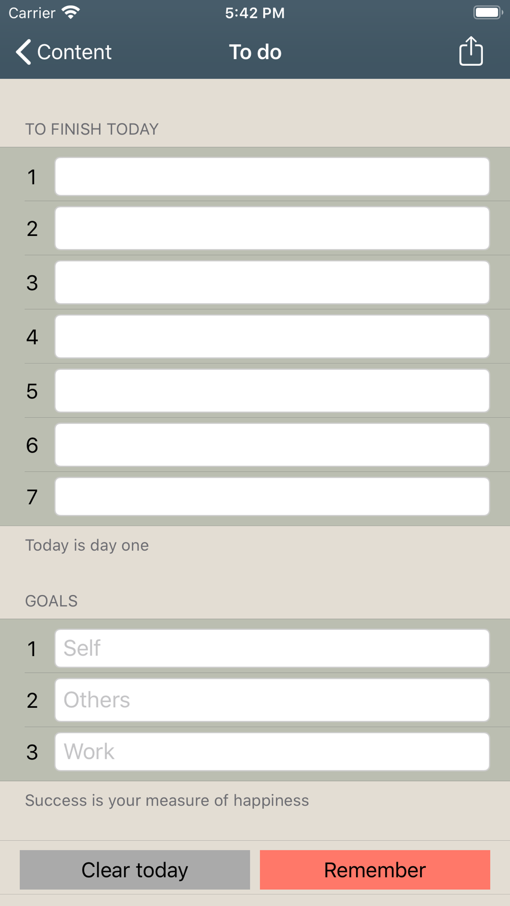 The to-do list is a minimalist set of seven tasks that you feel you can finish in a day.