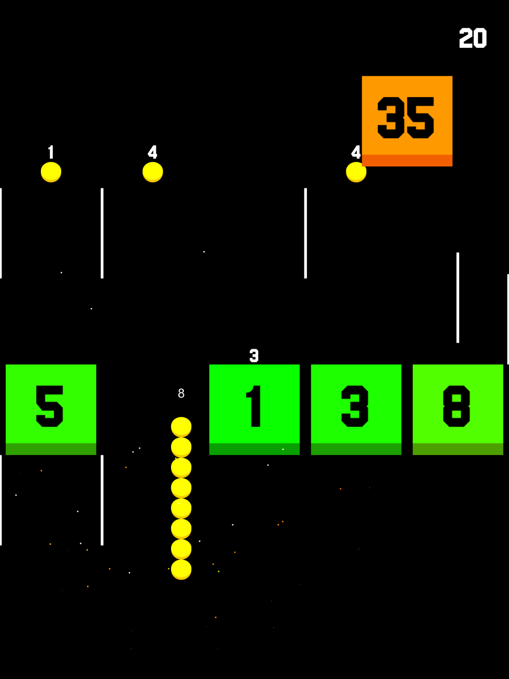 滑动手指引导一条由球组成的蛇,并将砖块打破。