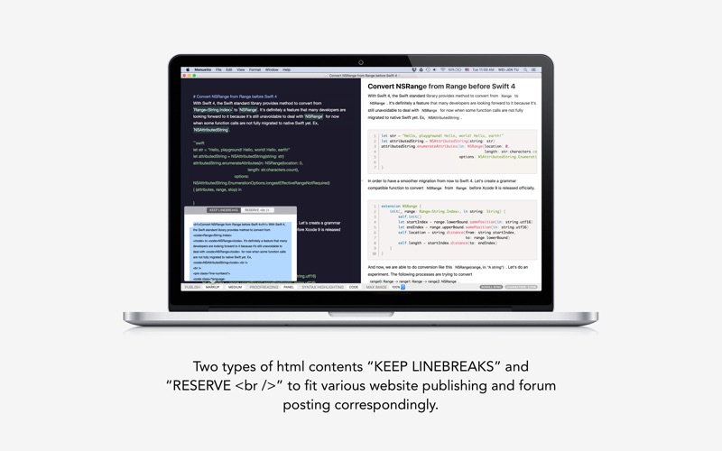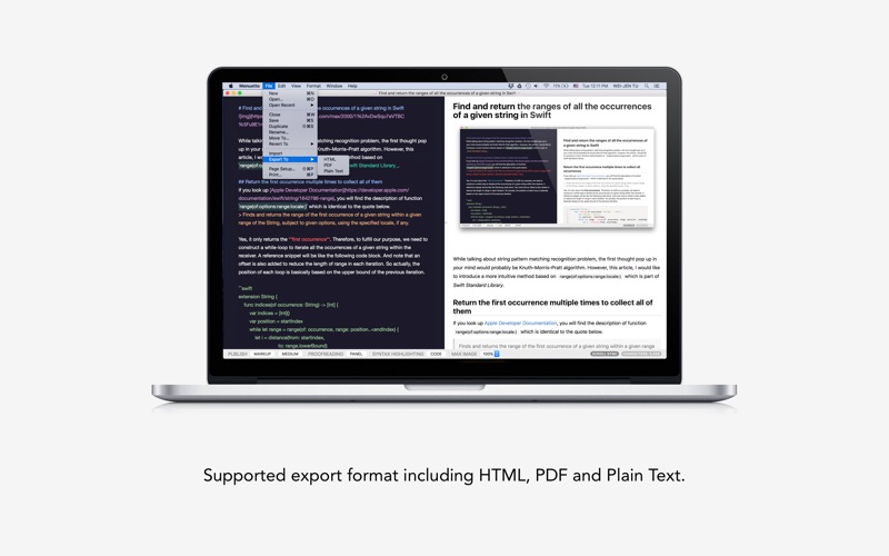 Menuetto is a Markdown editor provides a real-time preview of the rendered contents side-by-side after writing or editing a plain text document. The design makes Markdown writing faster and more efficient because it reduces the number of times to render work externally to proof for final output. Menuetto also comes with easy-to-use features, such as publish a story to Medium directly, export to PDF or HTML document, syntax highlighting for code snippets, and more.