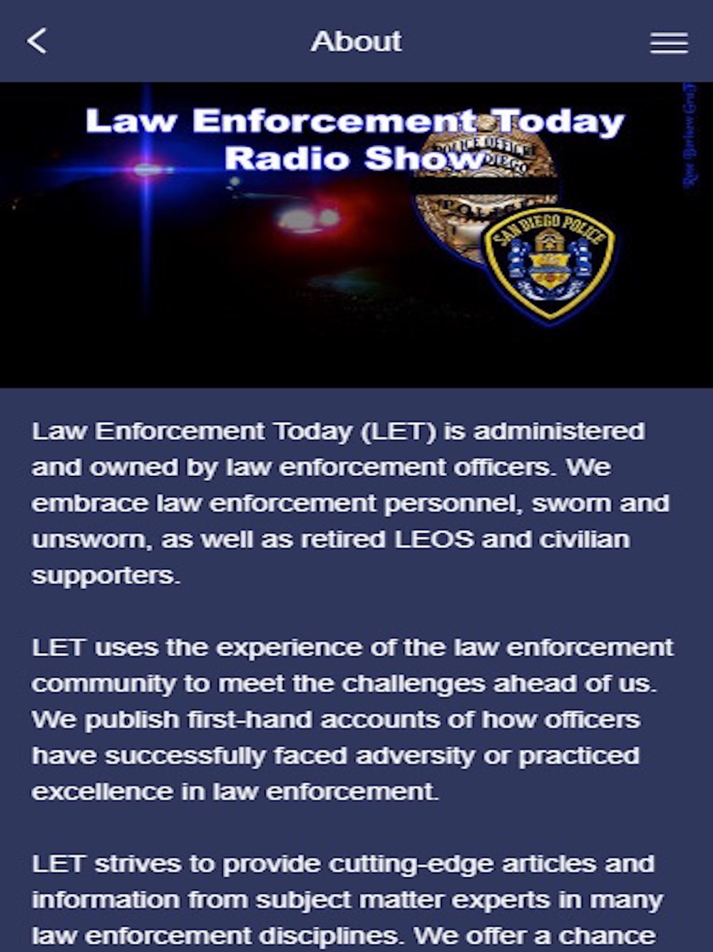 The Law Enforcement Today App provides complete access to all of our content, the radio show - podcast, website, news, articles, stories, videos, social media and our store. Our app is for Law Enforcement Officers active - retired, their families, friends and supporters.