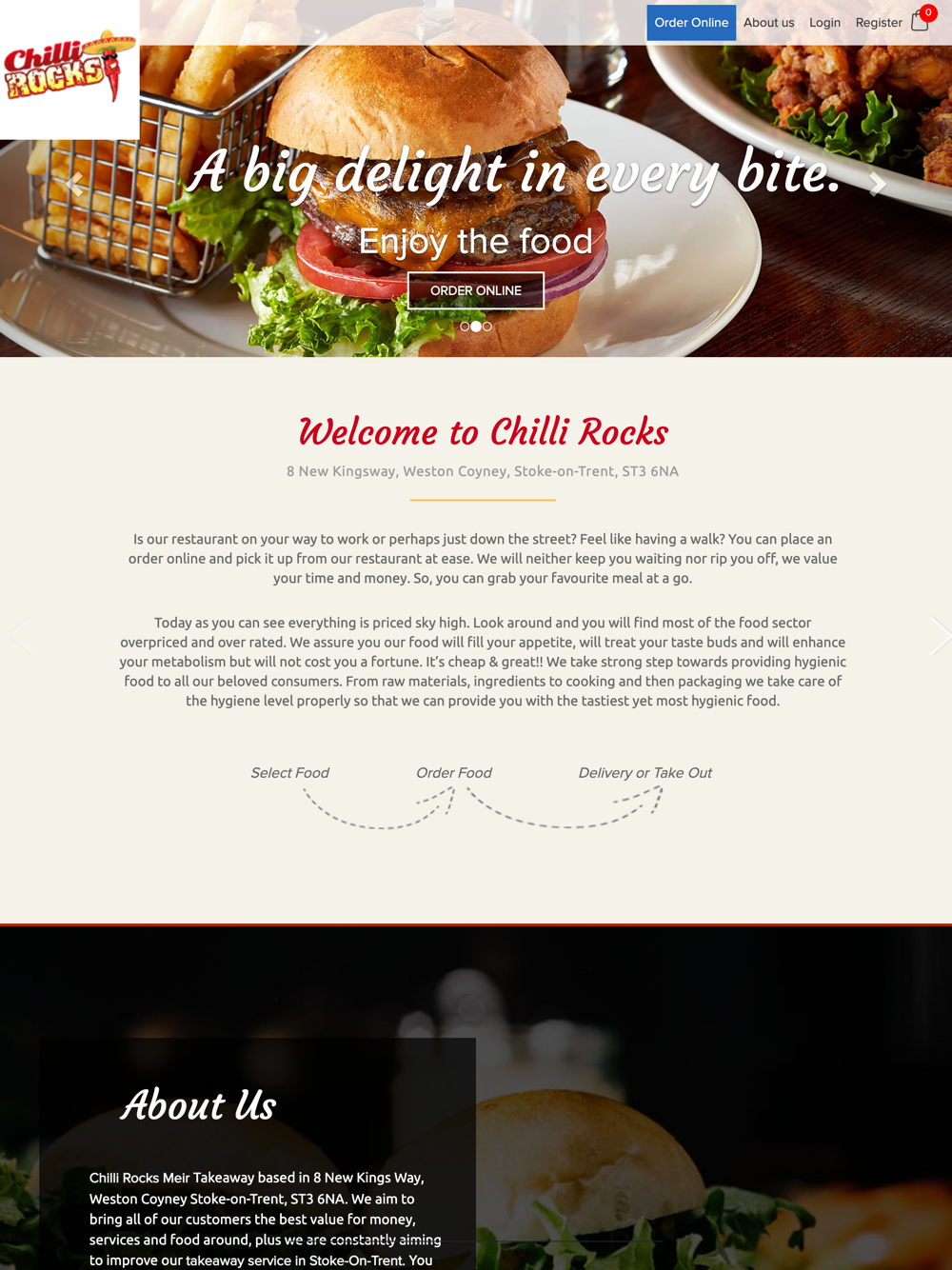 Chilli Rocks Meir Takeaway is based at 8 New Kings Way, Weston Coyney Stoke-on-Trent, ST3 6NA. We aim to bring all of our customers the best value for money, services and food, and we are constantly aiming to improve our takeaway service in Stoke-On-Trent. You can now order food online. Try our online website which contains all our takeaway menus in Stoke-On-Trent. You can now order your favourite Pizzas, Burgers and More online and get fast home delivery Here at Chilli Rocks Meir. We are constantly improving our service and quality to give our customers a better experience; which is why we are now proud to offer this fantastic online ordering website. You can even pay online and get your favourite Takeaway food delivered to your home in Stoke-On-Trent.