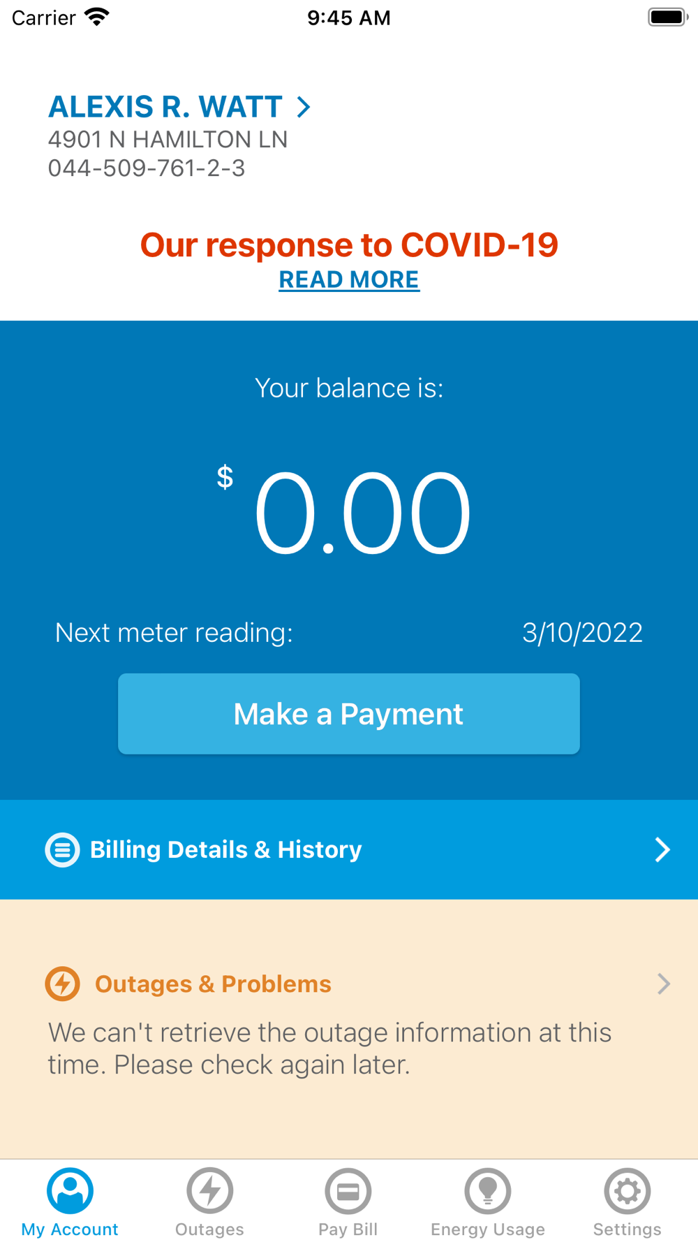 Welcome to a better way to manage your account with our customer mobile app. You can view and pay your bill, report an outage, check outage status, manage your accounts, view billing history, and more! Use the "Remember me" feature to make login a breeze. Everything is now at the touch of your fingertips.