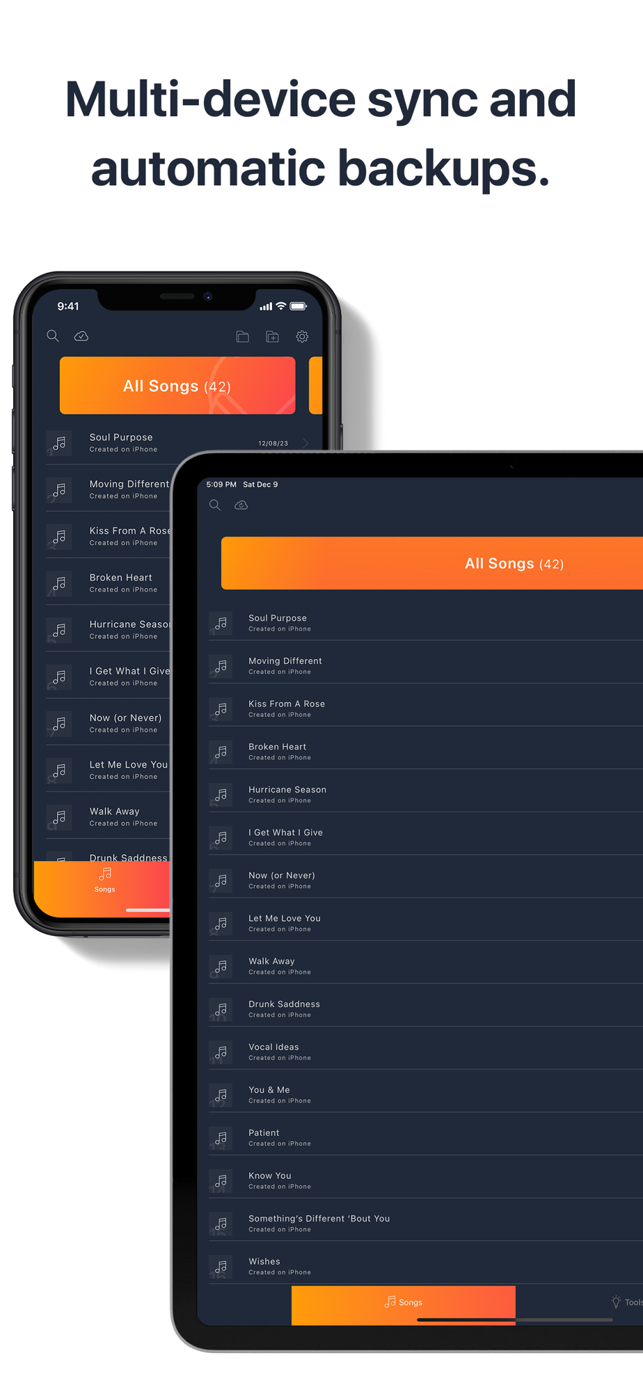 Start a song on your phone and perfect it on your iPad, all without missing a beat. Our automatic sync ensures your songs are always at your fingertips.