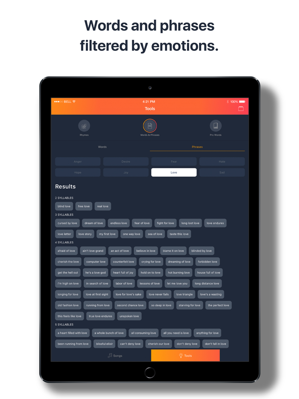 Overcome writer’s block with access to millions of rhymes and emotion-based filters. Save your best ideas for later, ensuring a constant flow of inspiration.