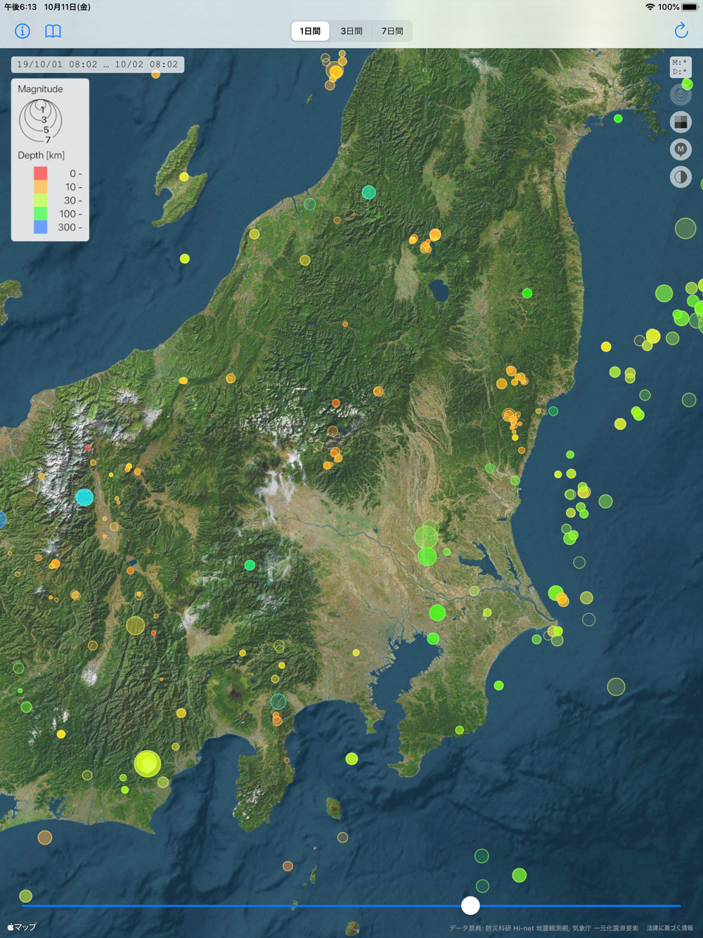 - Visualize the tendency of the earthquake occurrence in an easy-to-understand manner by operating the slider. Automatic playback is also available.
