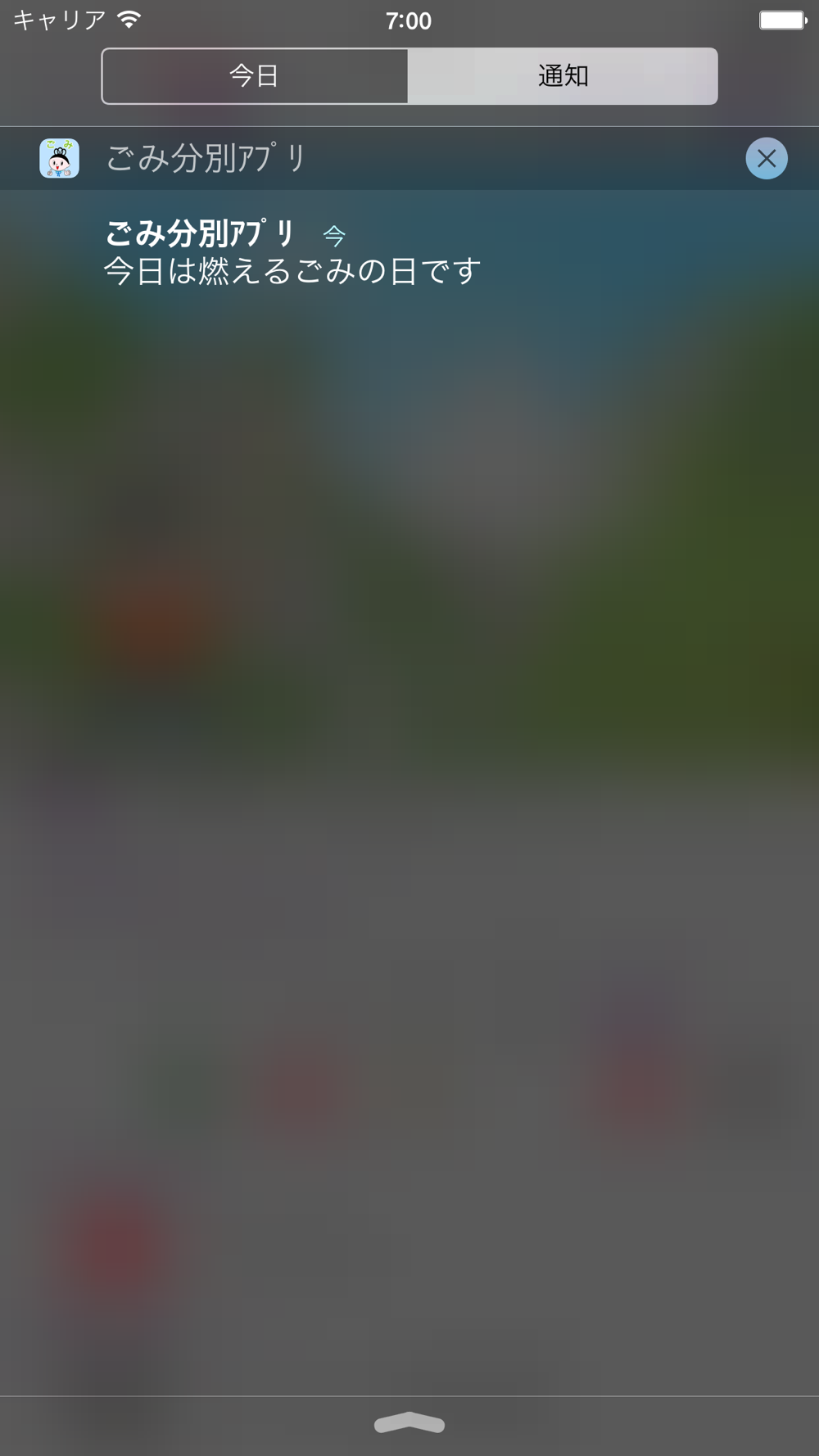 収集予定のごみ種別を前日と当日にアラートでお知らせします。時間は自由に設定することができます。