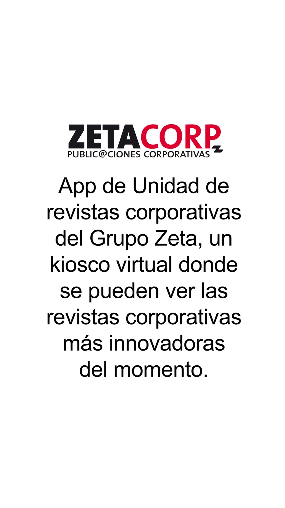 ZetaCorp es la App de Unidad de Revistas Corporativas del Grupo Zeta, un kiosco virtual donde se pueden ver las revistas corporativas más innovadoras del momento.