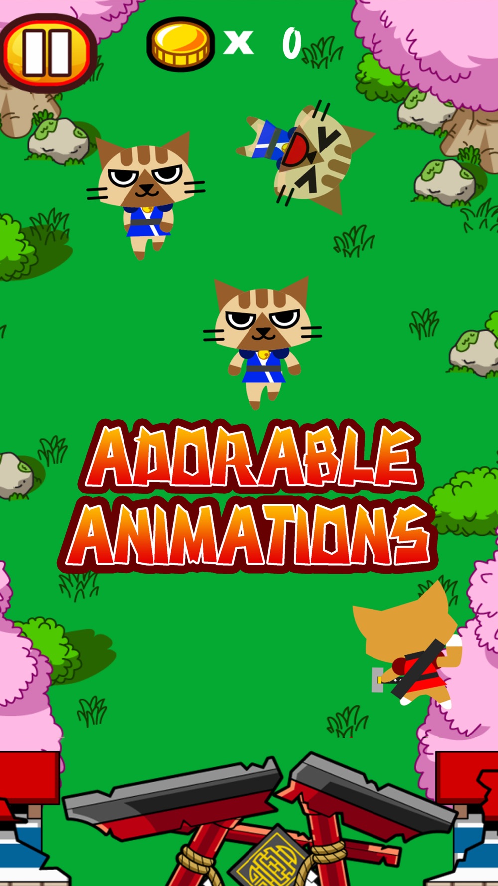The never-ending conflict between cats and dogs now comes to your mobile phones! Introducing Ninja Neko x Samurai Doge! Protect the Japanese shrine from enemy invaders. Guard the huge torii (temple gate) by bouncing the daggers back to the opposing division. Hoards of ninja nekos and samurai doges, all ready to cook up a clash! Who will emerge victorious?