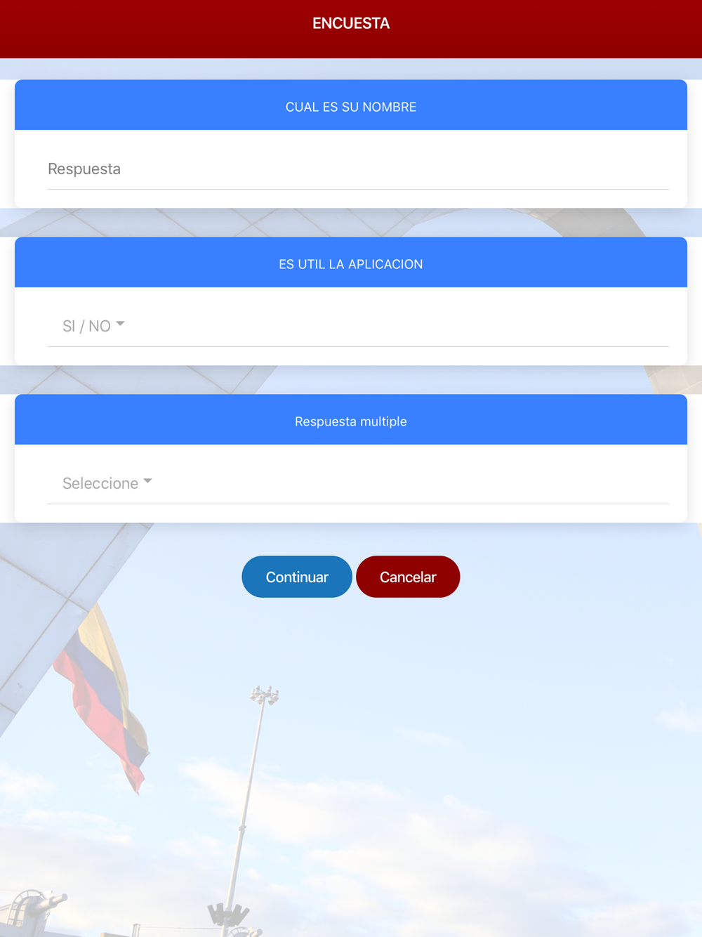 Aplicación para expositores de ferias realizadas en Corferias Bogotá- Se Implementa el manejo de información local sin requerir Internet- La encuesta se maneja de forma parametrizable- Permite emplear multi Idioma (Inglés – Español)
