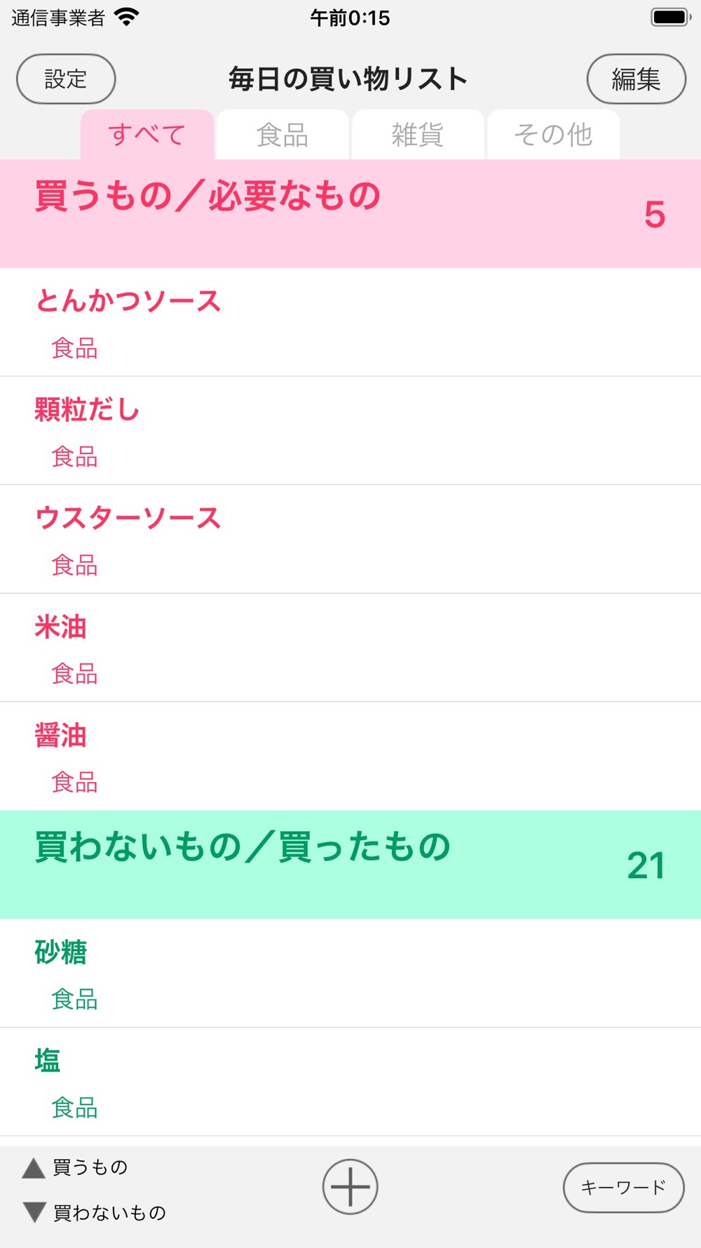 アプリには「買うもの」と「買わないもの」の2つのリストがあり、タップすることで2つのリストを移動します。