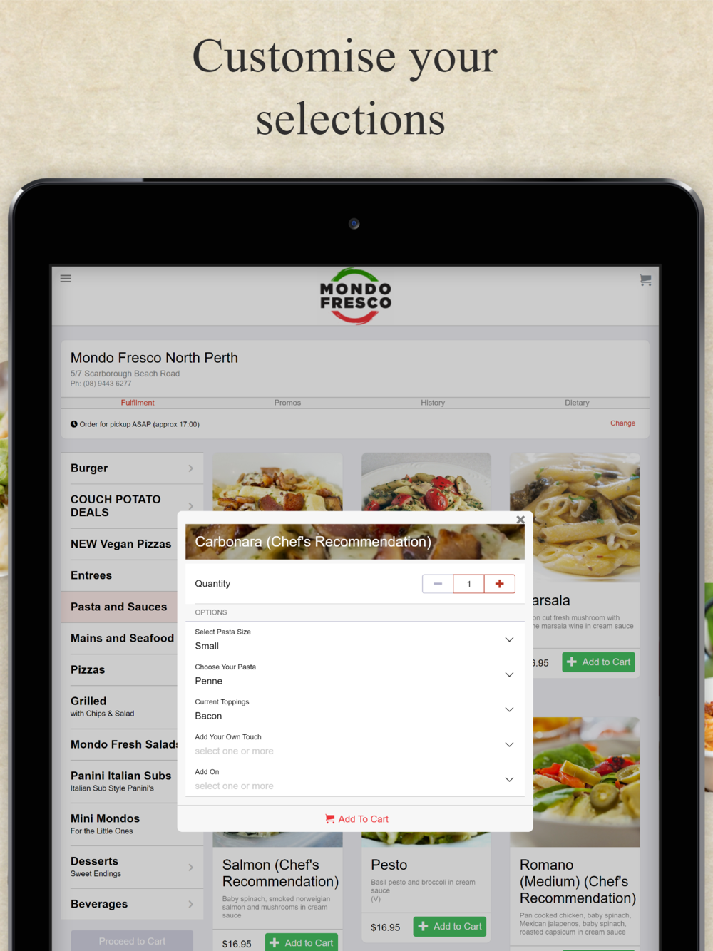 You can also order online from our web site www.mondofresco.com.au using your smartphone, desktop, laptop, and tablet computers.