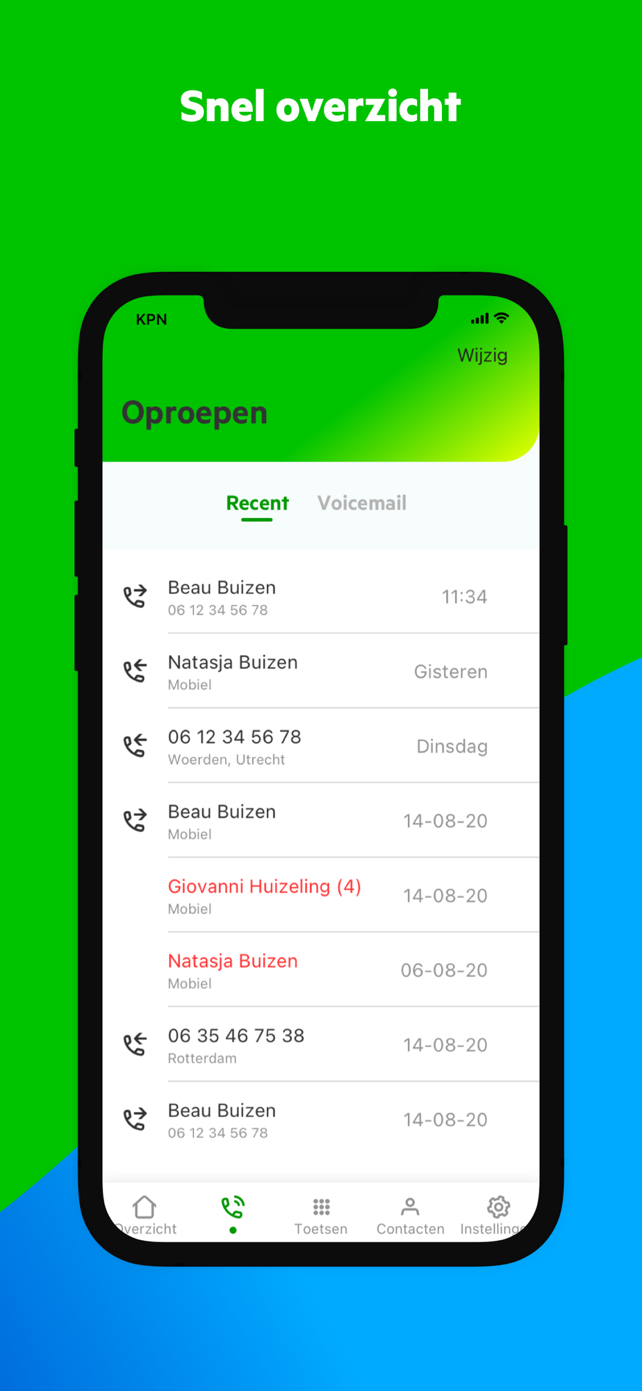 - Gemisten vaste en mobiele gesprekken inzien en terugbellen