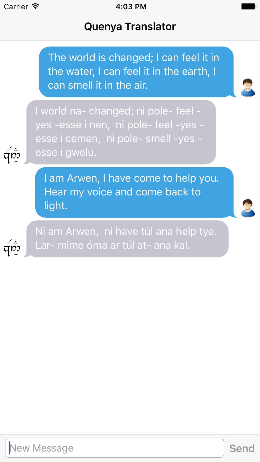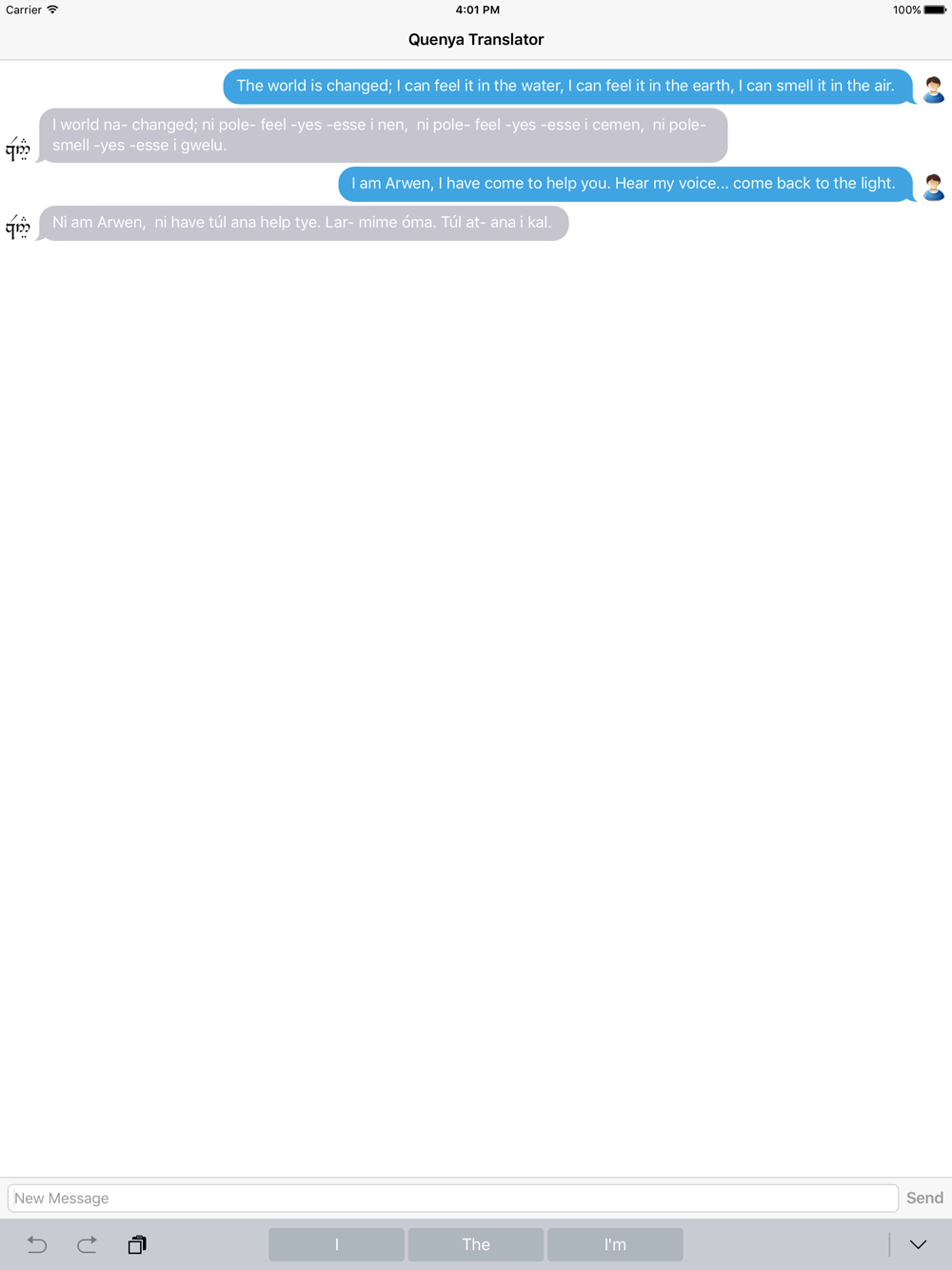 Convert from English to Quenya. Quenya is one of the many languages spoken by immortal Elves in J.R.R. Tolkien's novel Lord of The Rings. This Quenya Translator translates the English language sentences to Elvish Quenya equivalents.