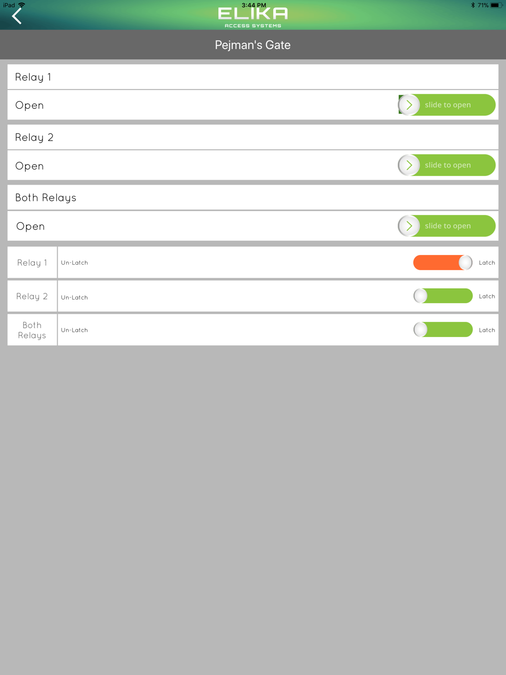 Introducing the Elika Global App. The app that will allow you to open, close and hold open your gates or doors from anywhere in the world through your smart device.See the real-time status of either of your relays through the app. The power to control your gate is a touch away