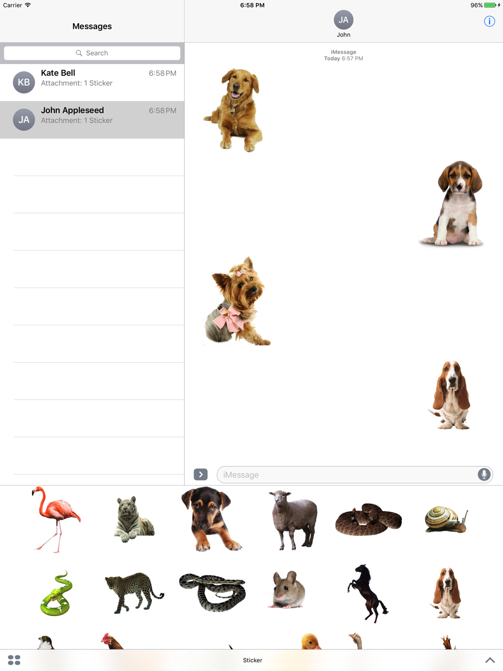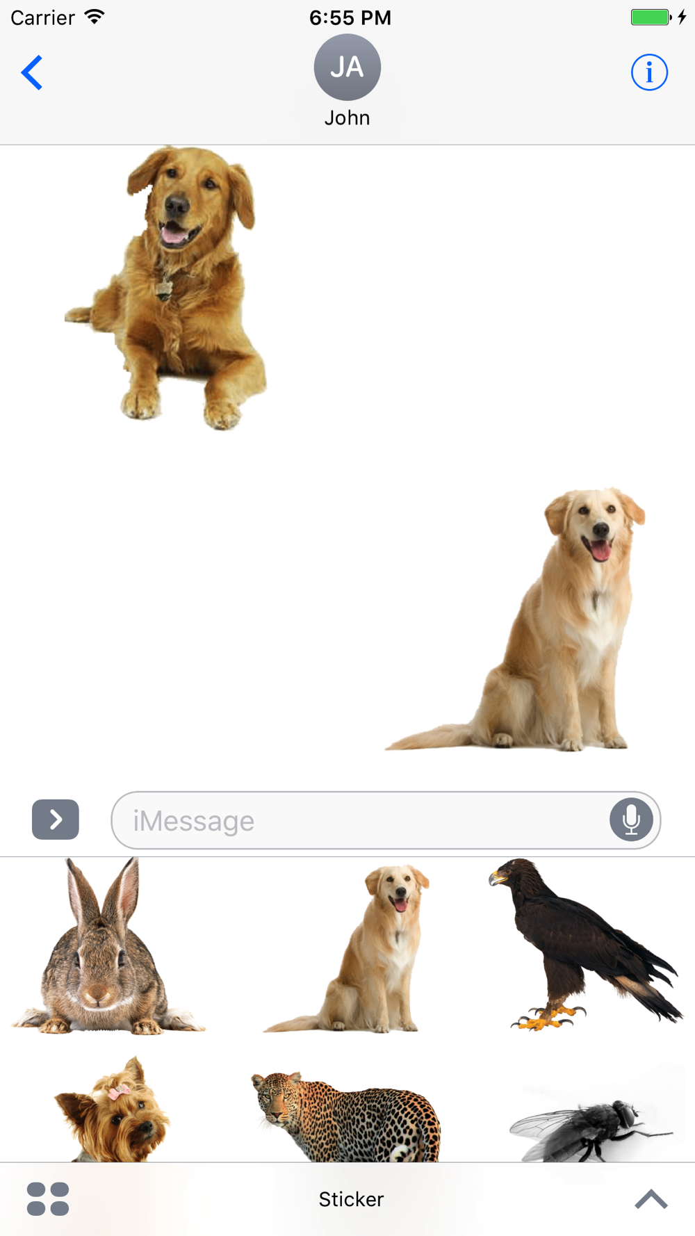 Animals Stickers contains a lot of beautiful real animals stickers created especially for iMessage. You will find from fish to birds, from wild animals to domestic etc.